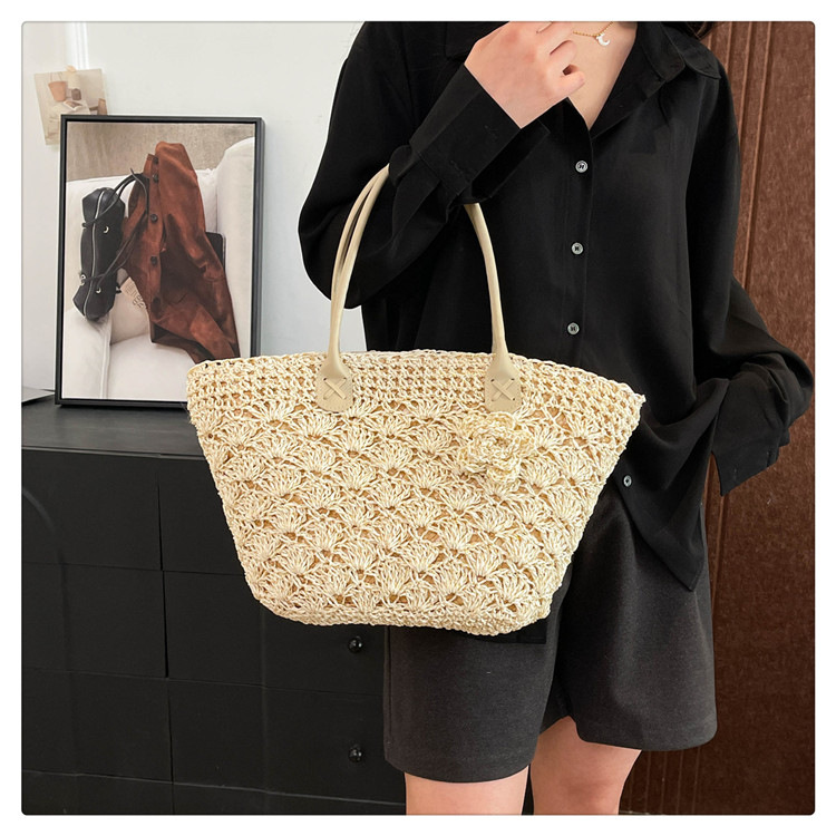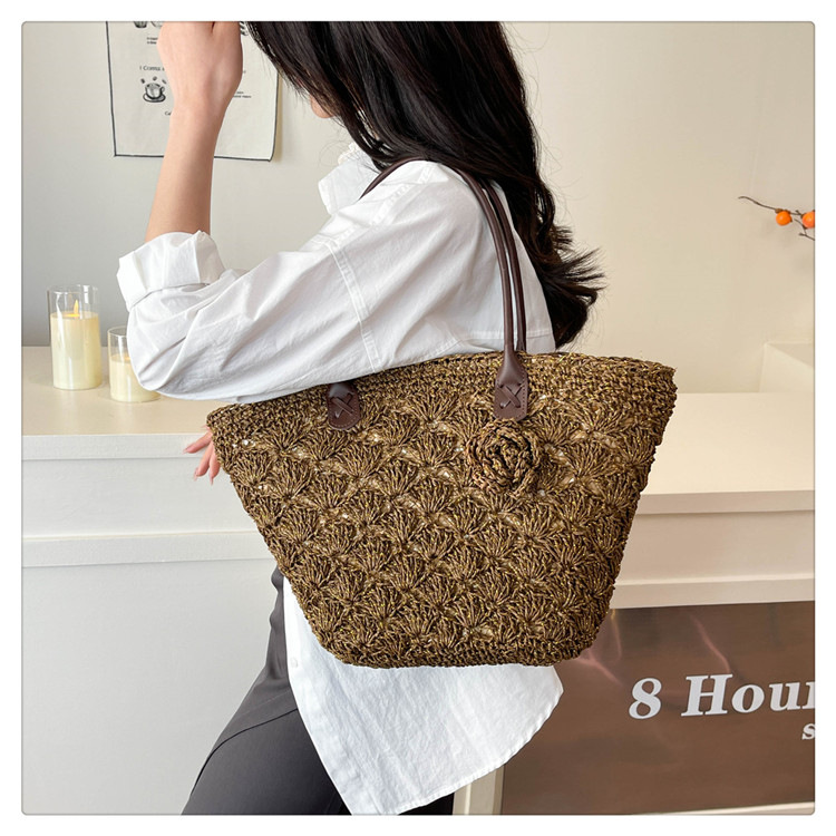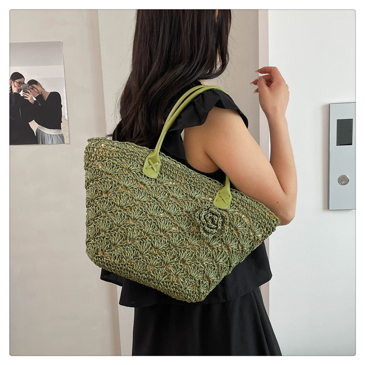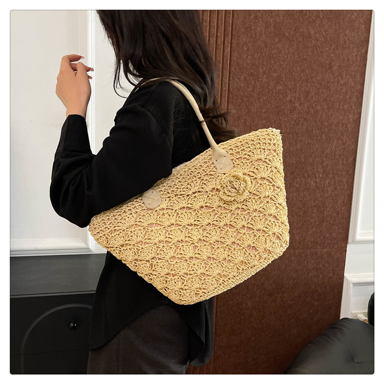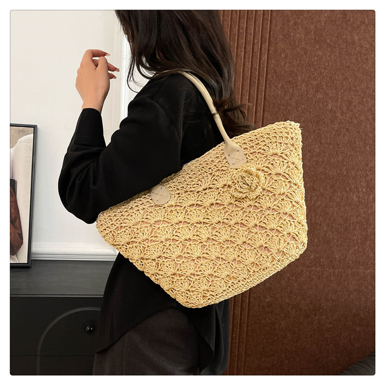 2025百搭旅行草编包女包单肩包大容量托特包通勤编织包沙滩包包女