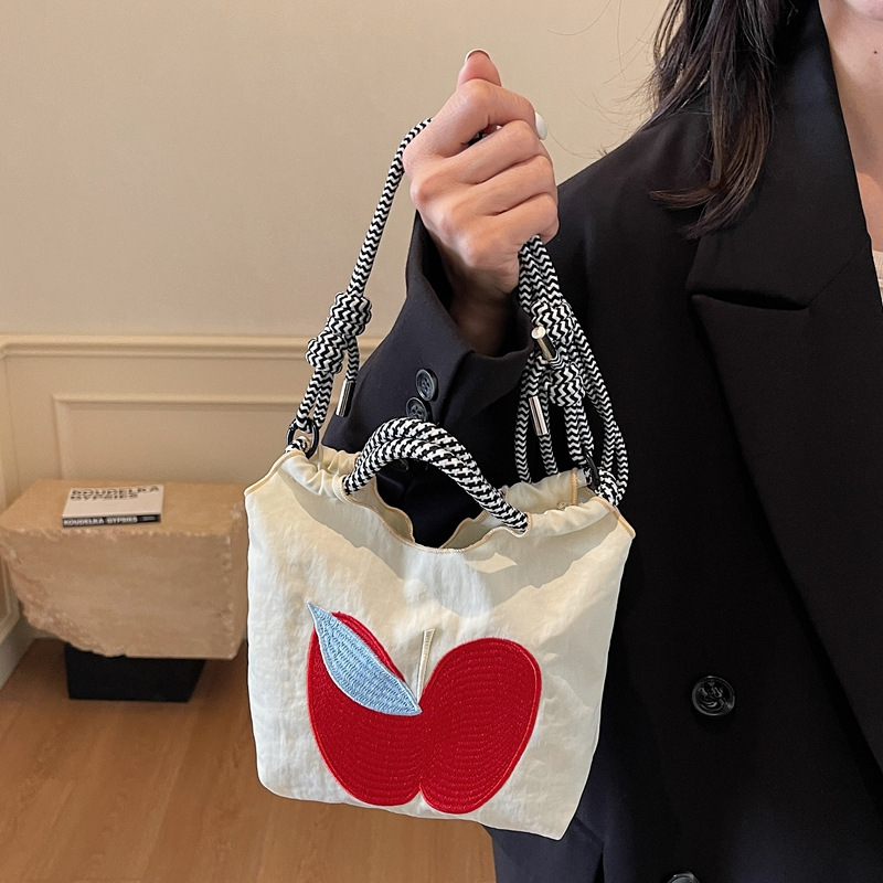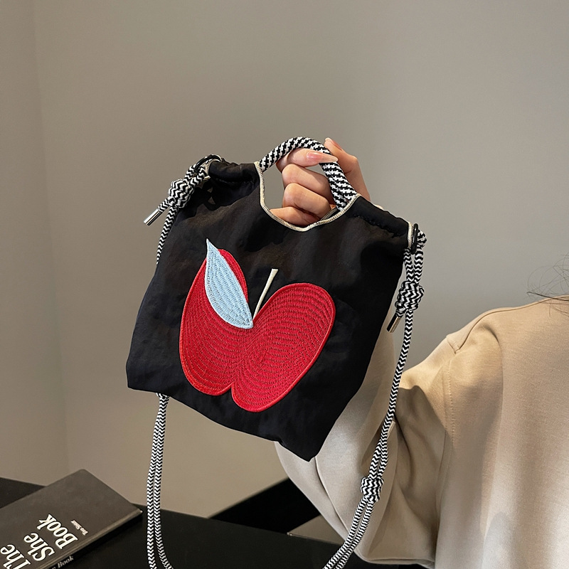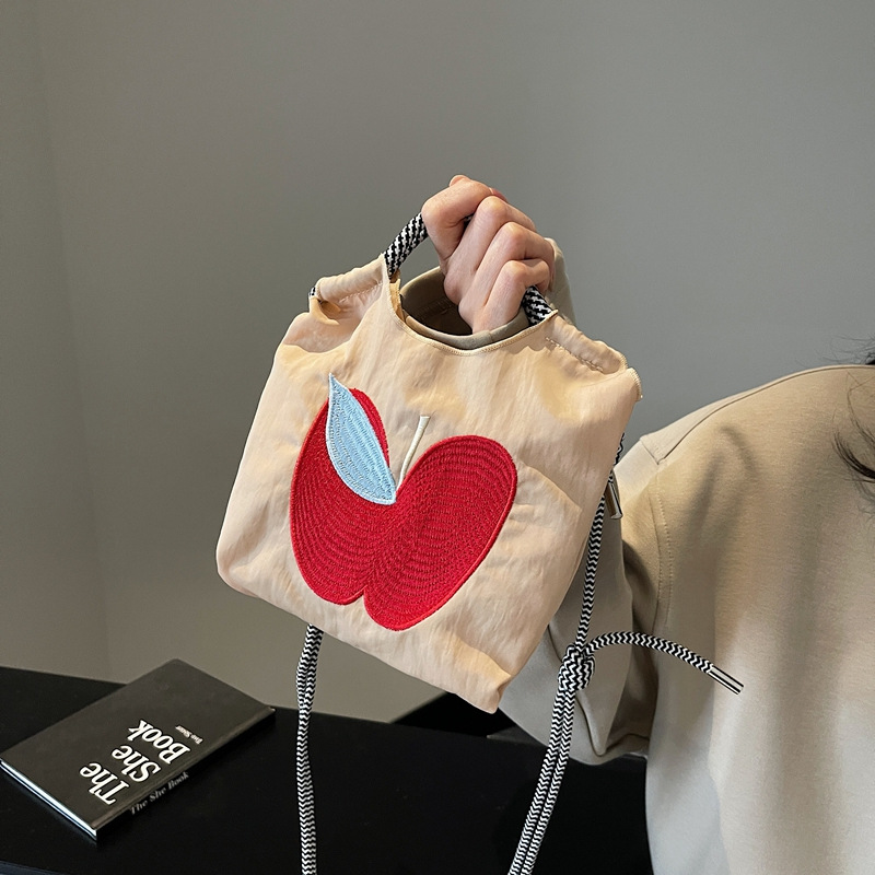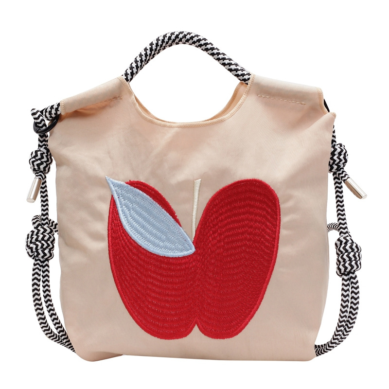 超火日系刺绣苹果环保袋购物袋帆布袋手提女包通勤斜挎小号托特包