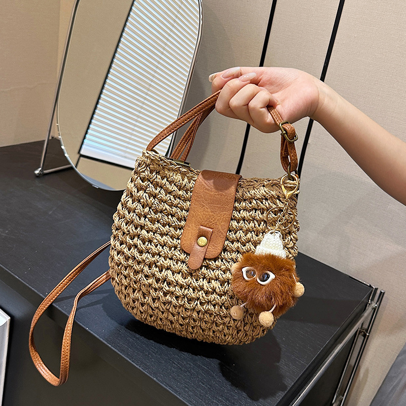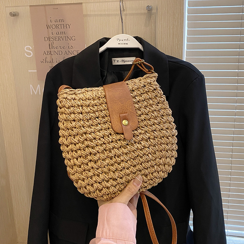 跨镜编织草编包包女2025小众设计时尚海边沙滩手机包单肩斜挎女包
