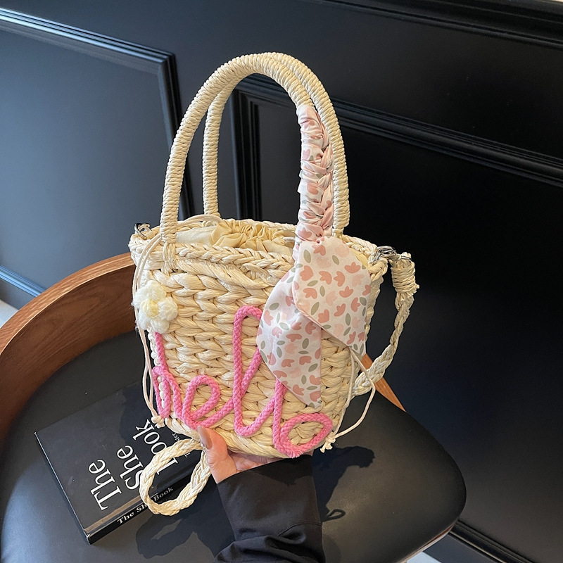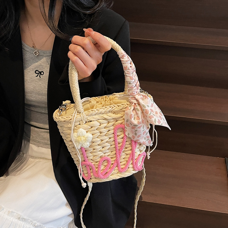 草编包2025新款时尚字母编织女包流行斜挎包女洋气ins手提菜篮子