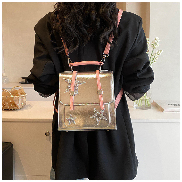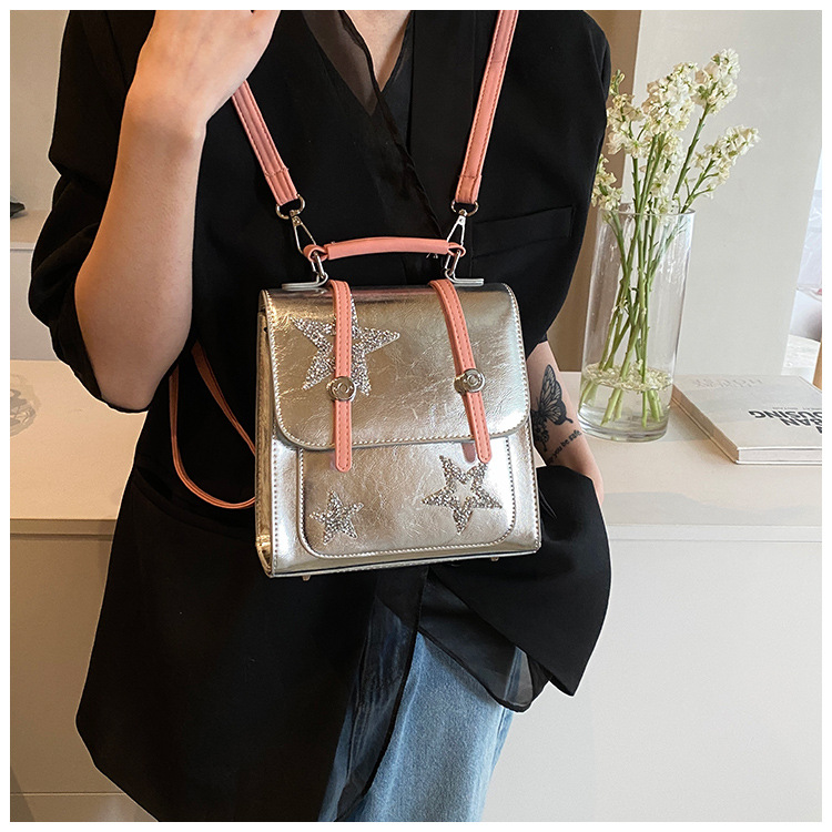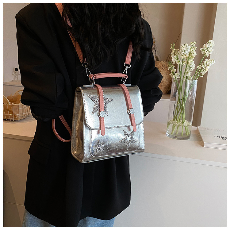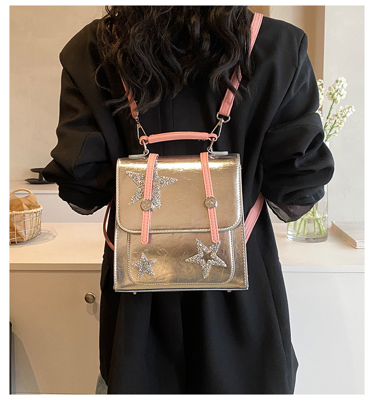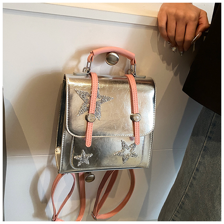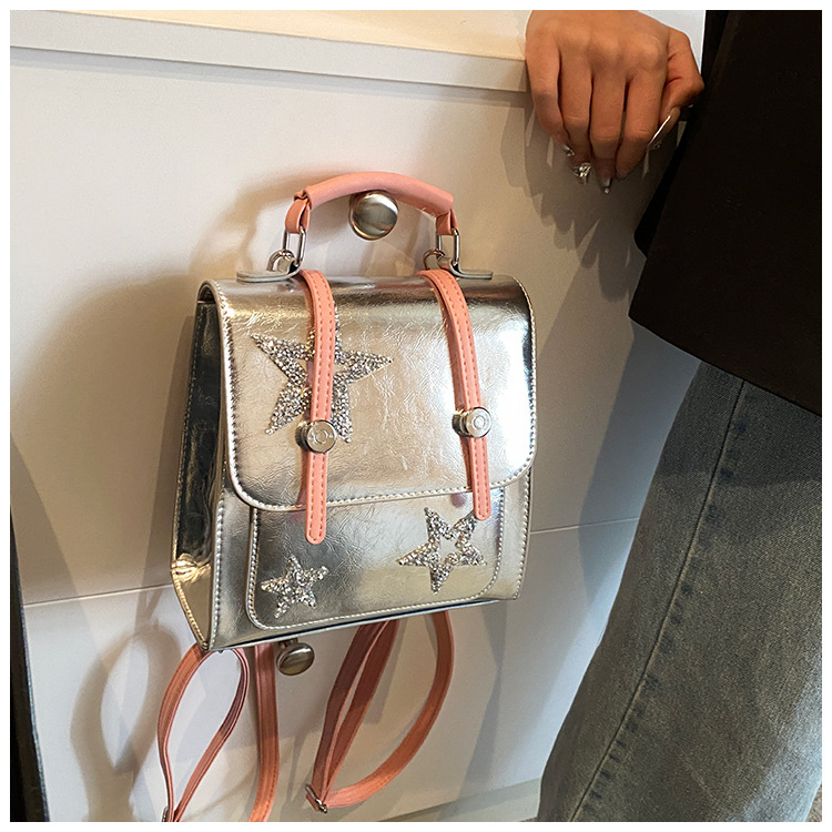 跨境女包2025春季新款韩版ins风双肩包时尚亮片星星潮百搭小背包
