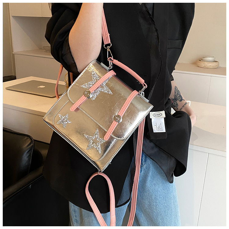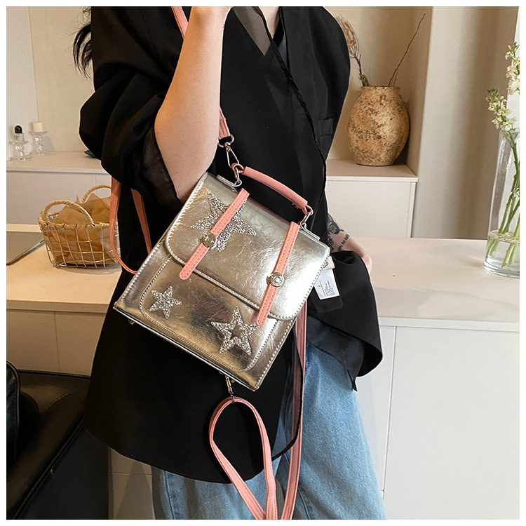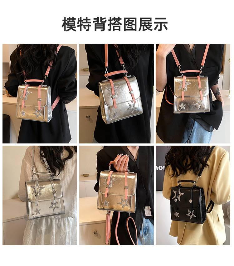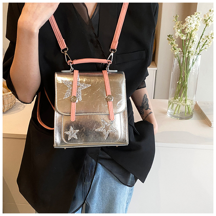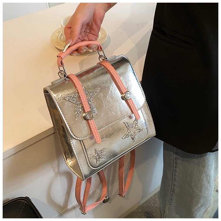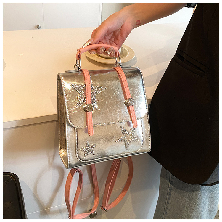 跨境女包2025春季新款韩版ins风双肩包时尚亮片星星潮百搭小背包