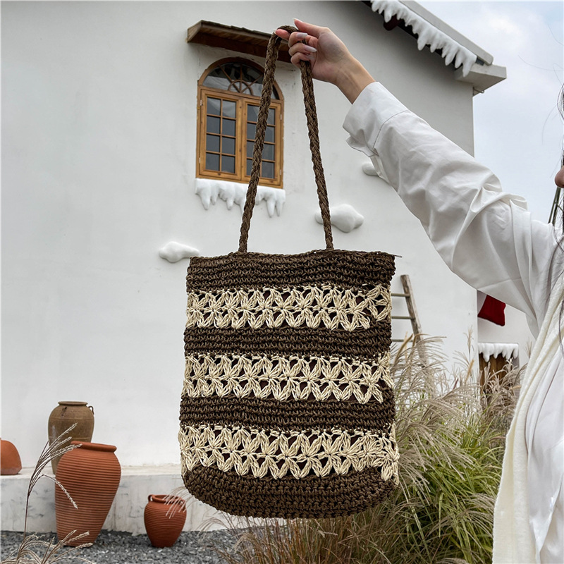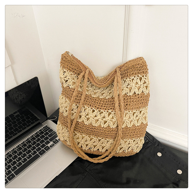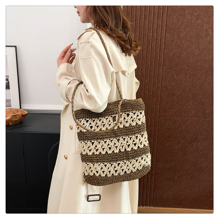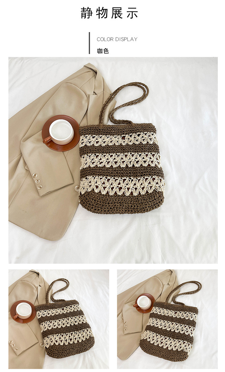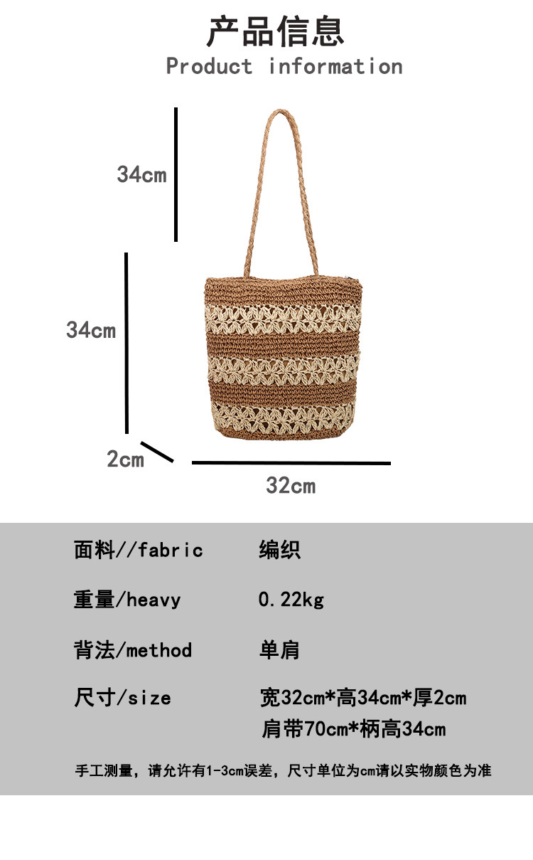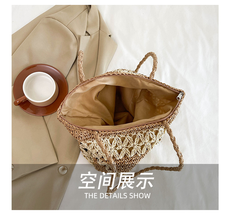 韩版镂空花朵单肩草编包新款夏百搭草包编织包海边度假沙滩包