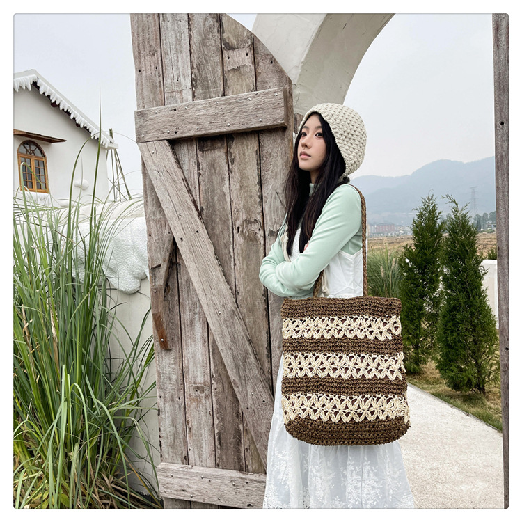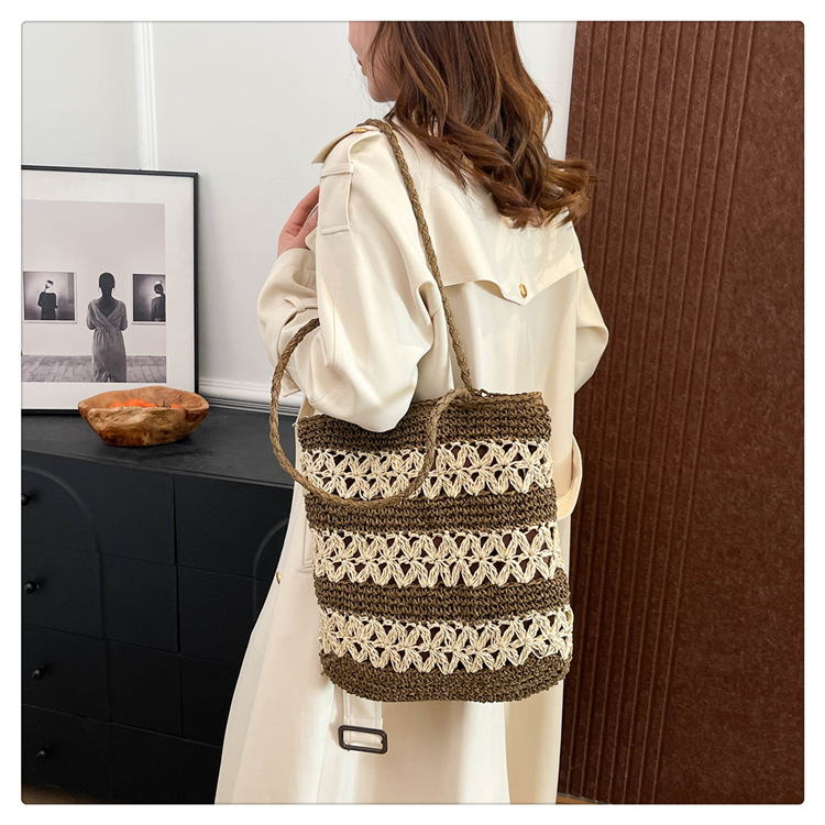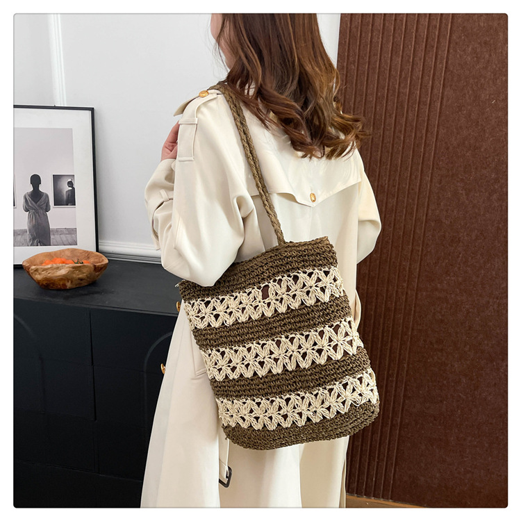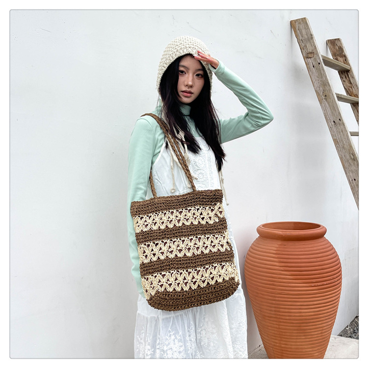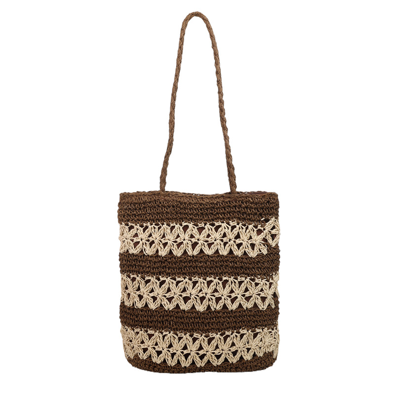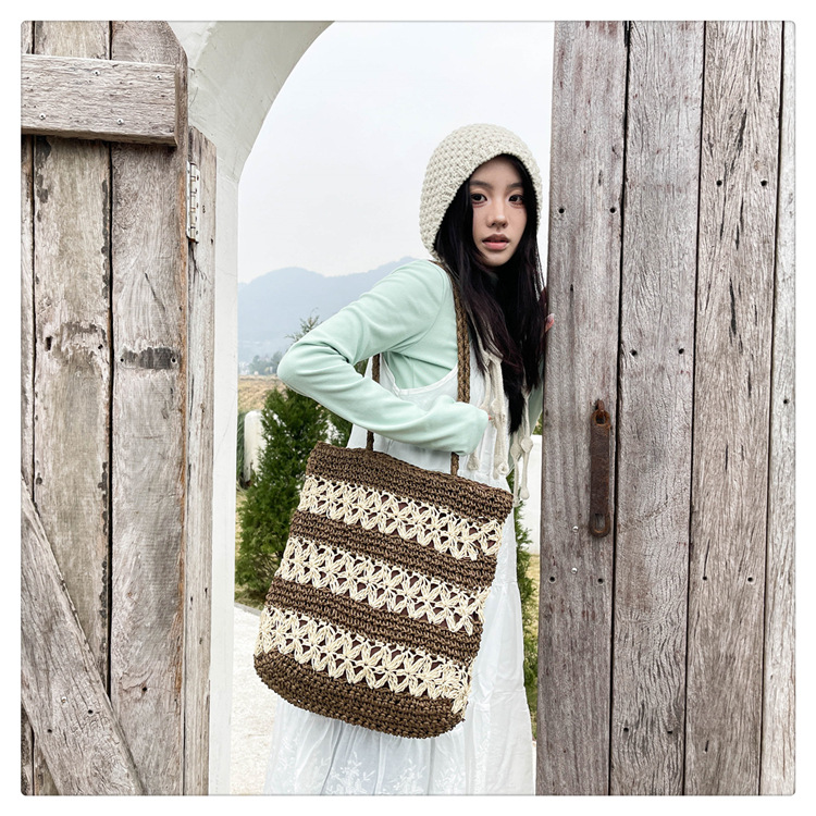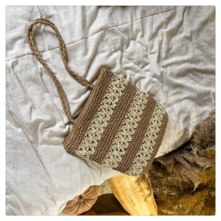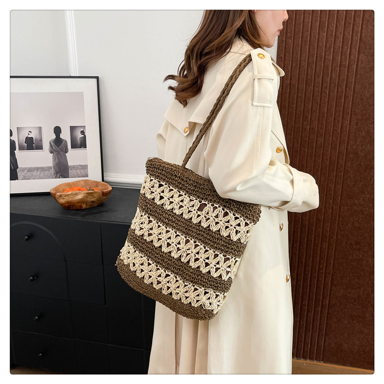 韩版镂空花朵单肩草编包新款夏百搭草包编织包海边度假沙滩包