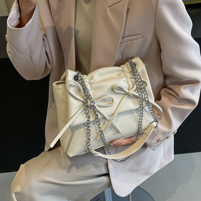 包包女斜挎包新款夏季款大容量百搭高级感女士链条单肩褶皱包