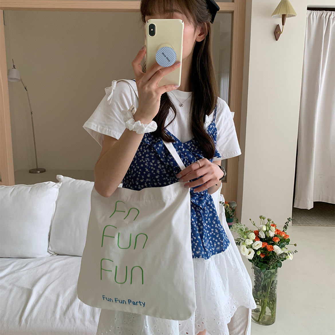 韩系ins风帆布包简约字母单肩包清新撞色帆布袋大容量学生上课包