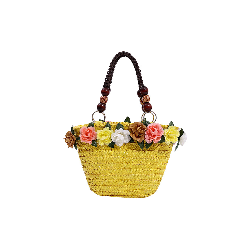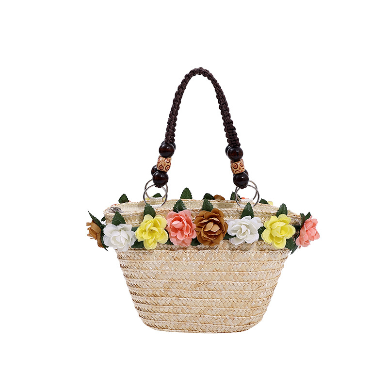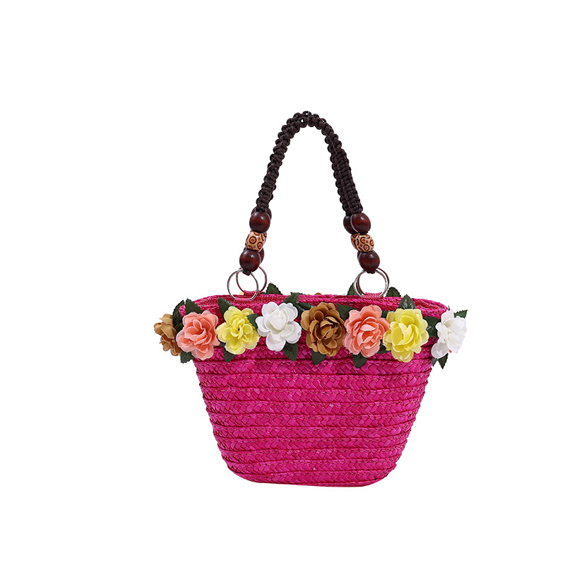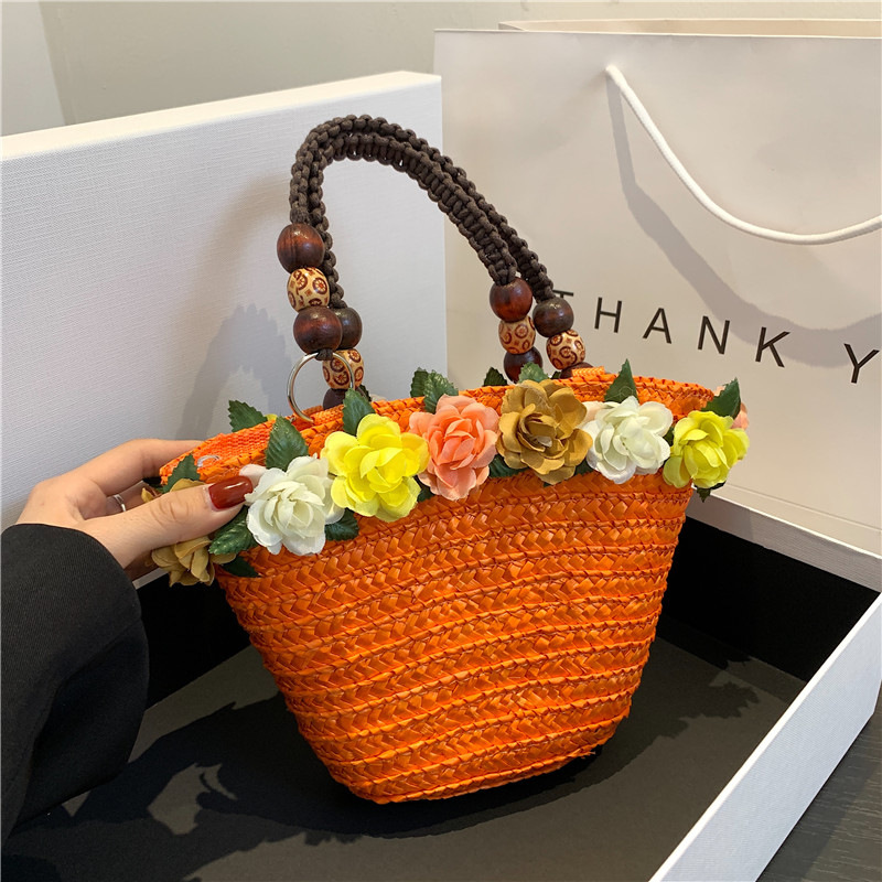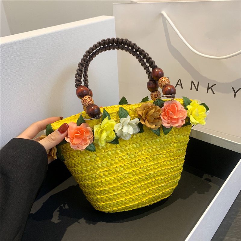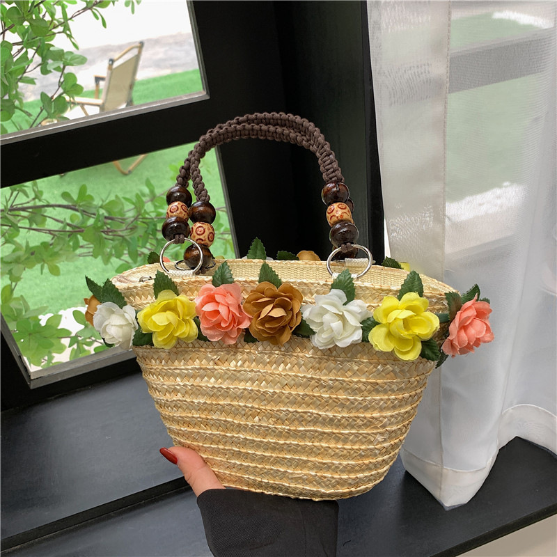 仙女海边度假沙滩草编包包女夏新款鲜花手提篮子包编织手拎包