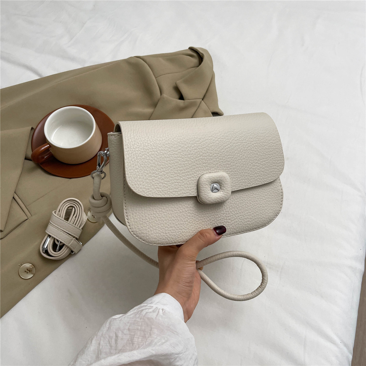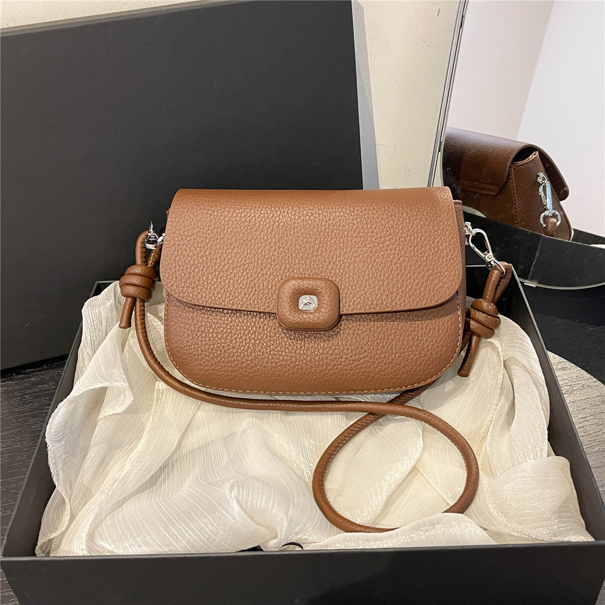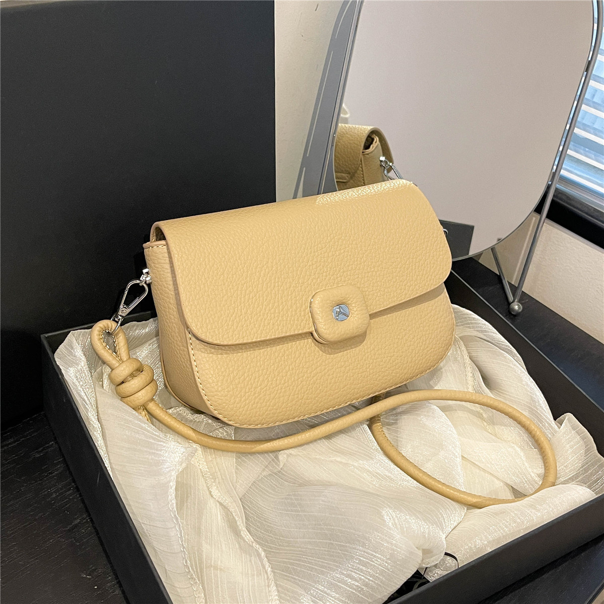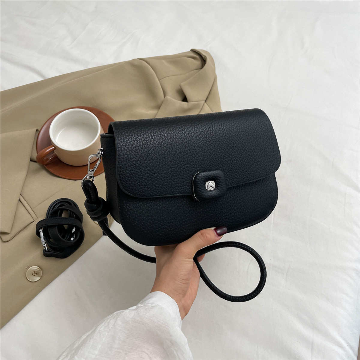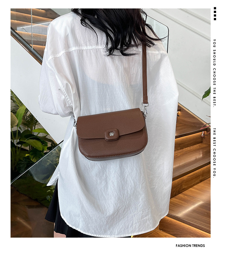 软皮女士包包新款夏时尚百搭高级感荔枝纹牛皮单肩斜挎小包包