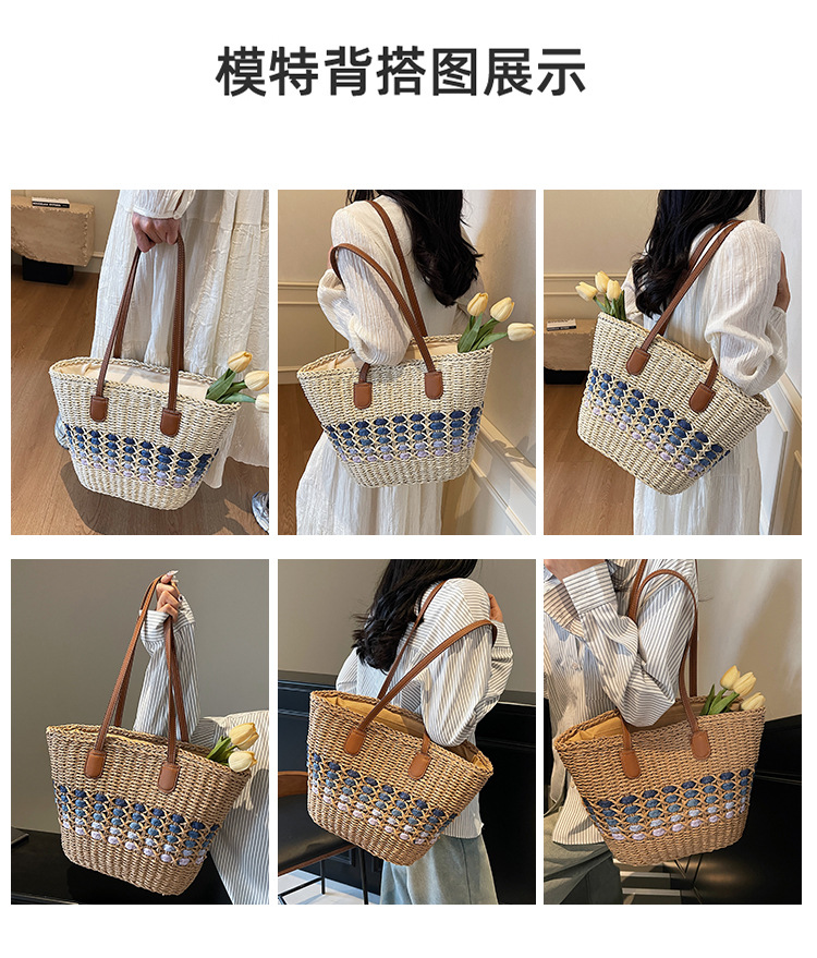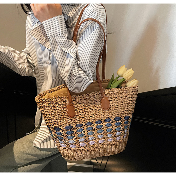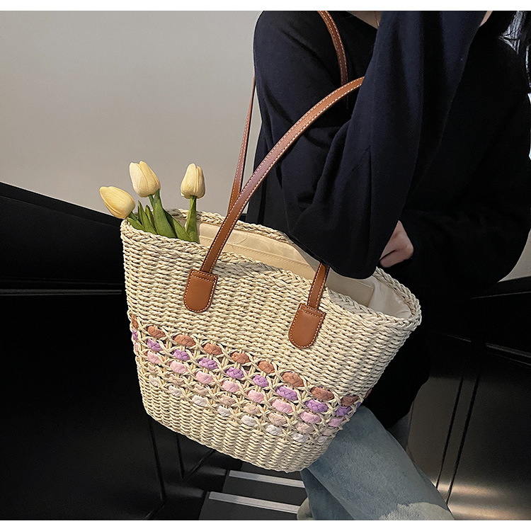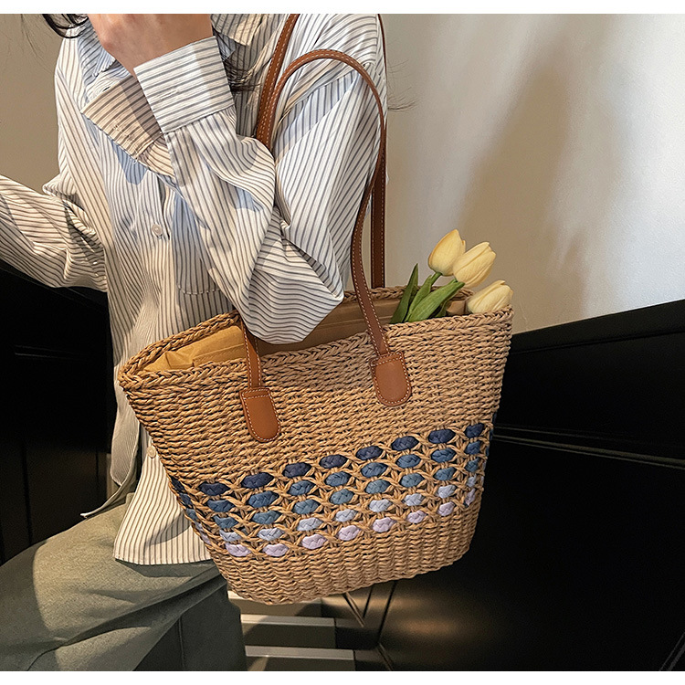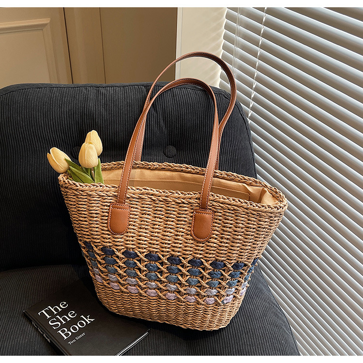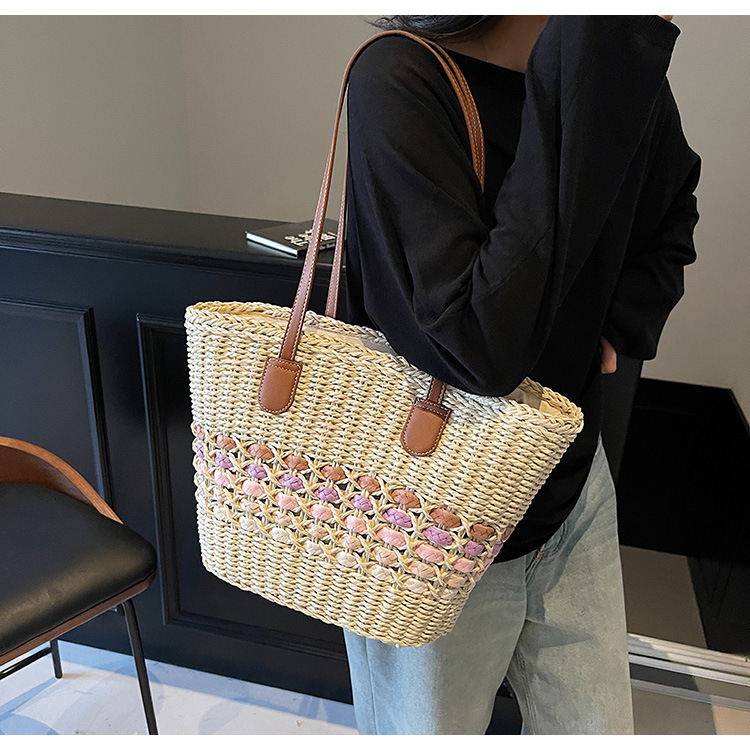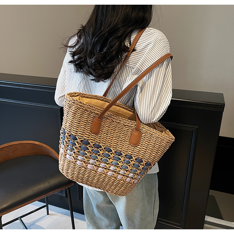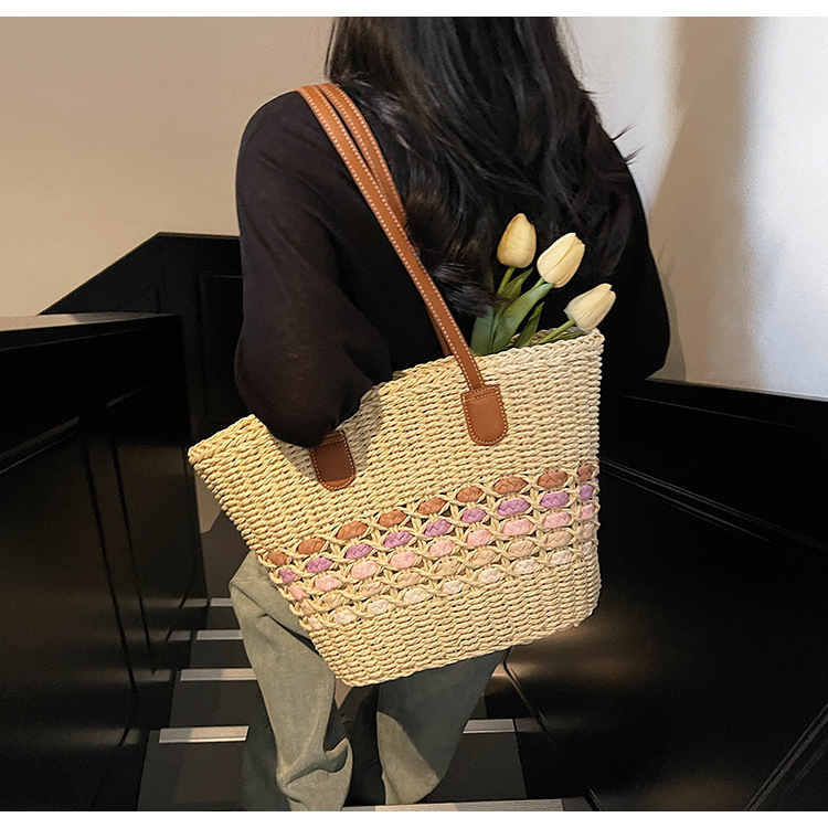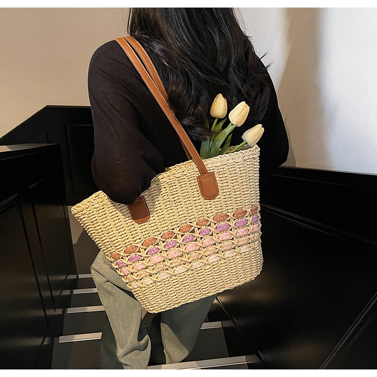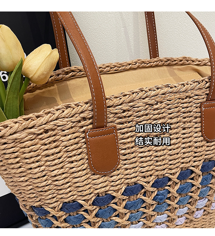跨境大容量编织草编包女2025新款时尚百搭休闲度假沙滩包菜篮子包