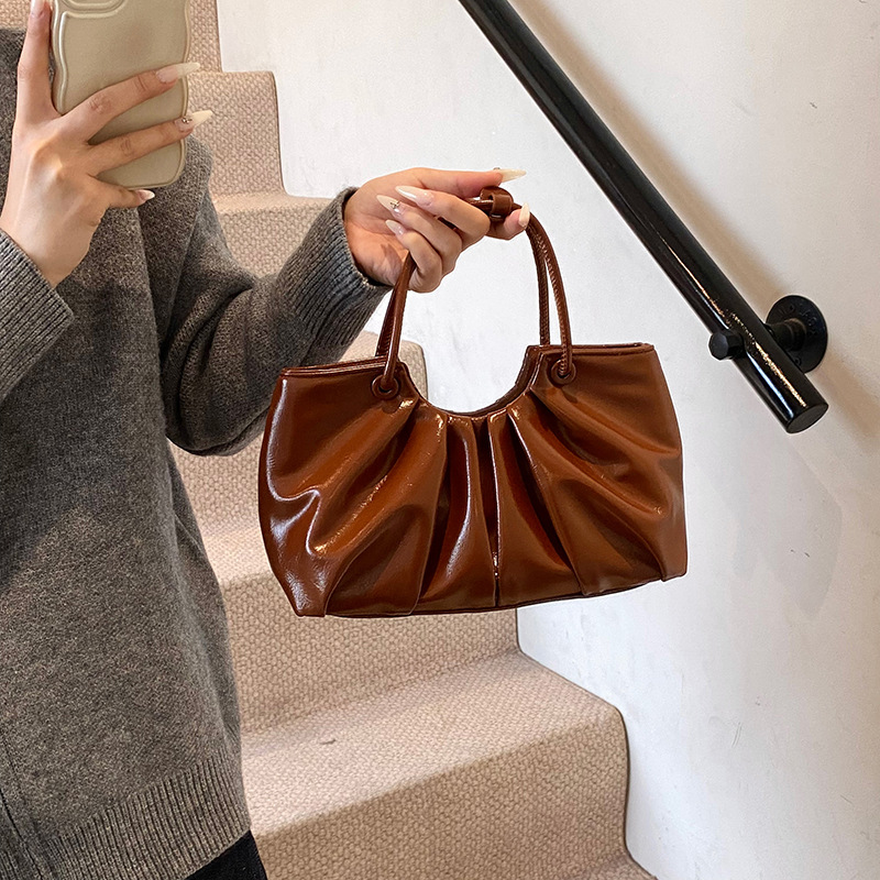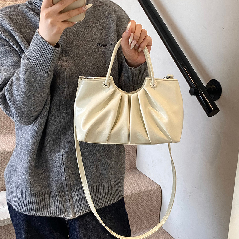 复古美拉德小包包女新款褶皱手提云朵包秋冬时尚油蜡皮斜挎包