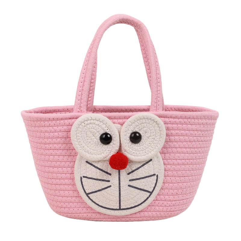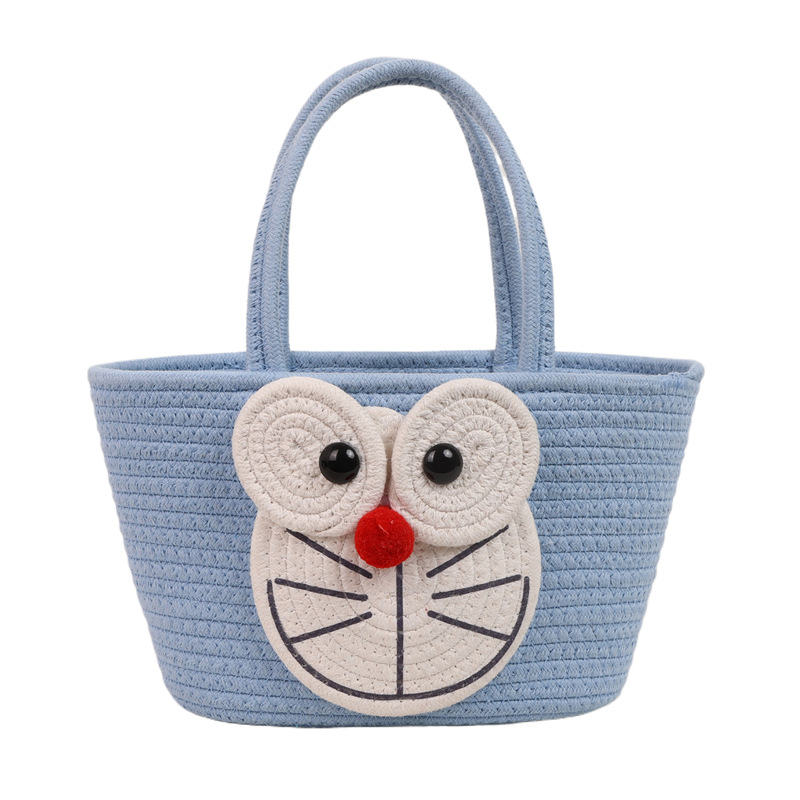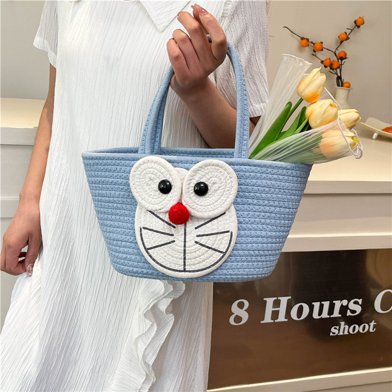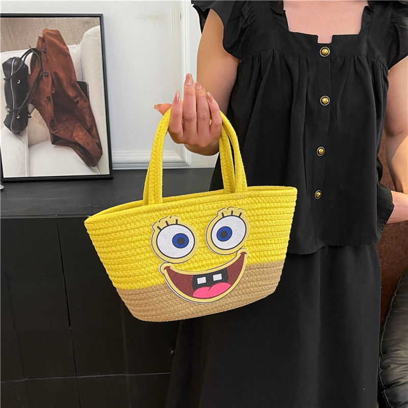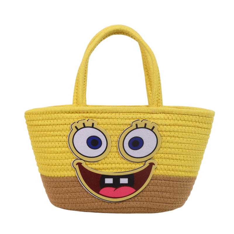 卡通海绵宝宝棉线编织女生手提包大容量野餐露营收纳篮伴手礼篮子