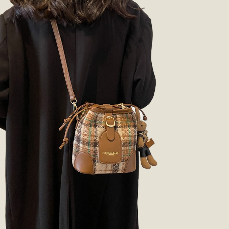 单肩包小包包女时尚通勤复古斜挎包格子包高级质感百搭斜挎水桶包