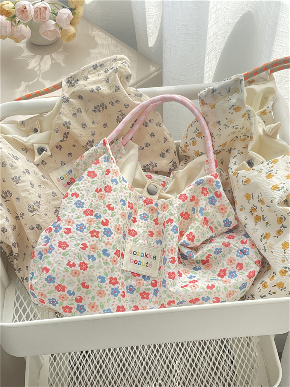 碎花帆布包包女夏新款大容量手提包薄款手提度假沙滩包
