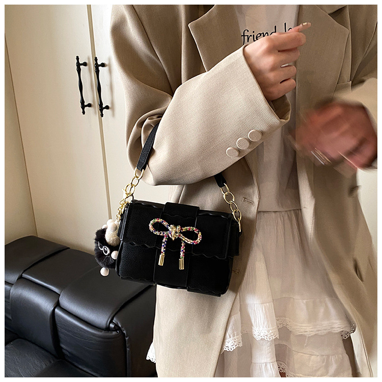 韩国小众机车蝴蝶结包女新款时尚小方包甜酷辣妹风单肩斜挎包