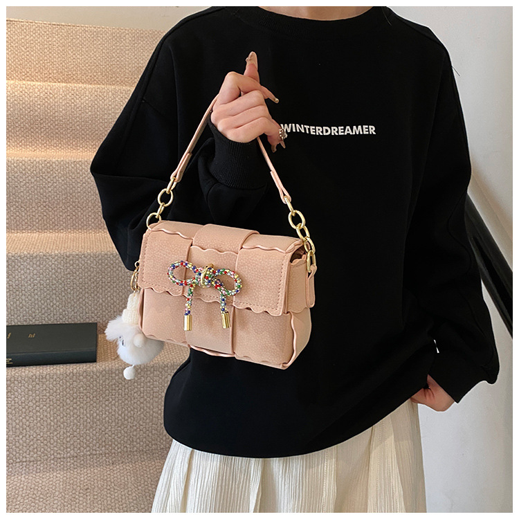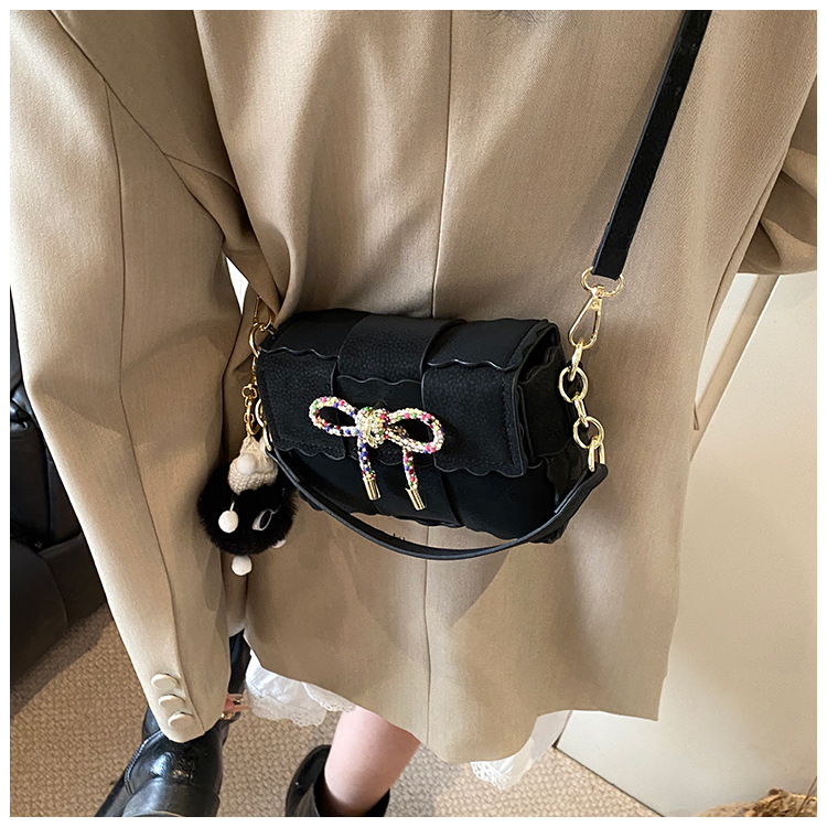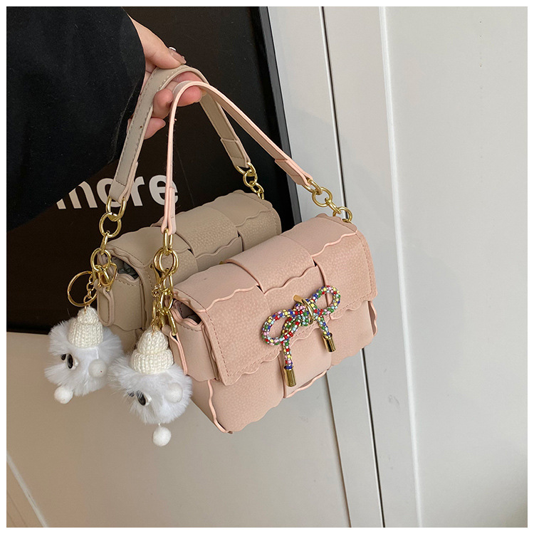 小众设计2025新款时尚编织小包包女式蝴蝶结小方包简约质感斜挎包