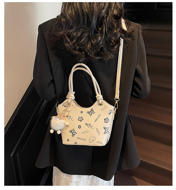 复古休闲水桶包女2025春季新款简约质感手提包时尚洋气单肩斜挎包