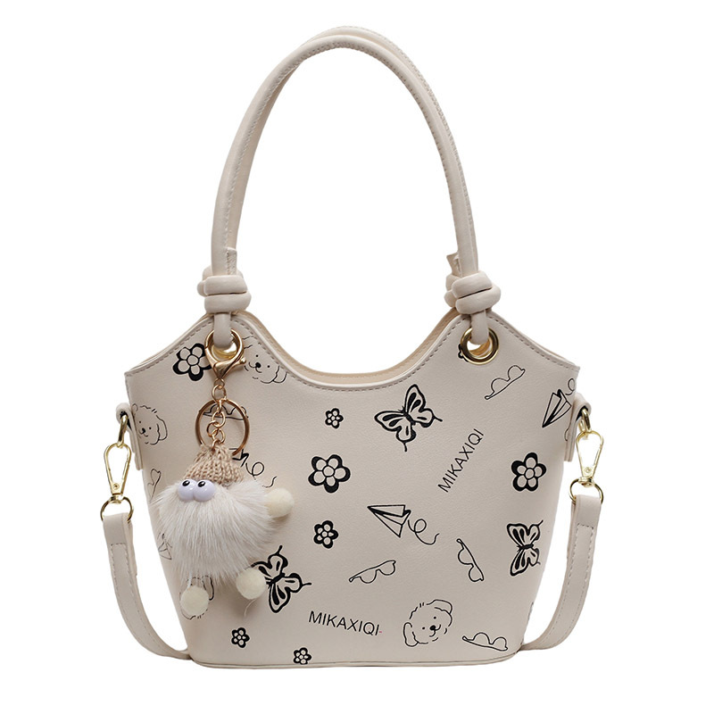 黄色帆布包韩国印花大容量通勤单肩包简约购物袋潮