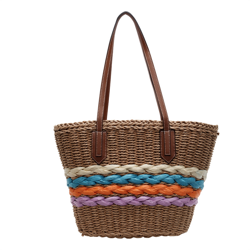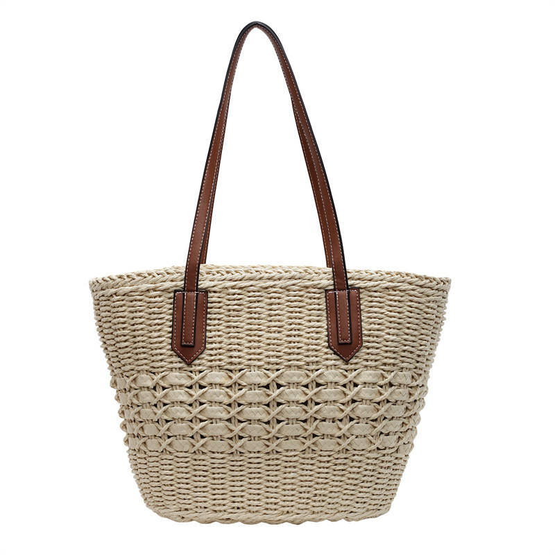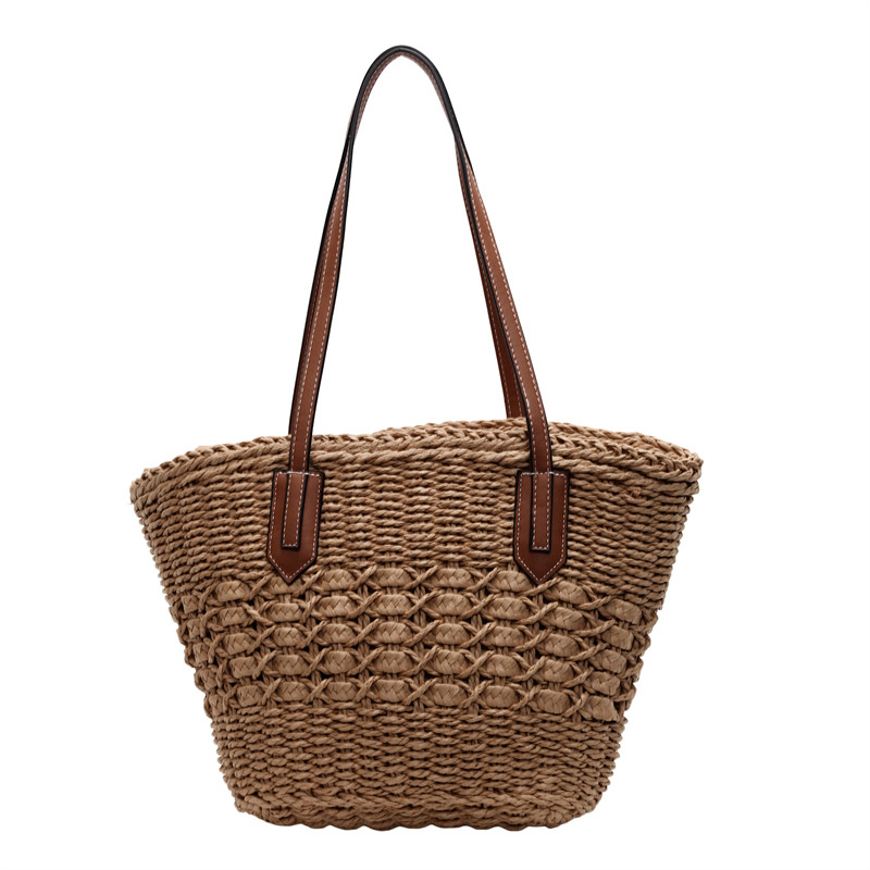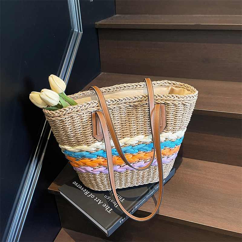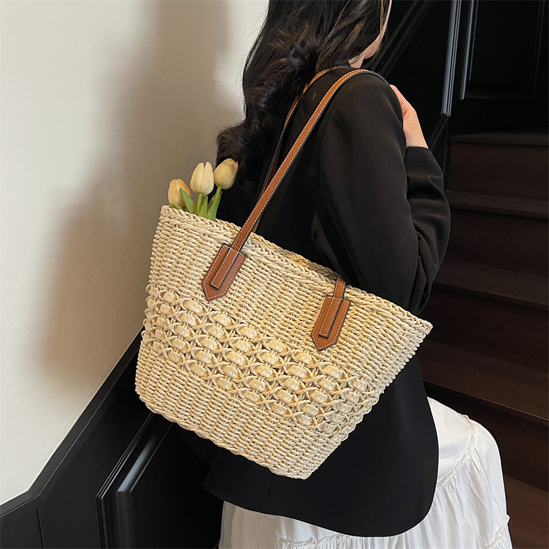 草编包包女春夏新款潮时尚休闲风托特包纯色大容量单肩编