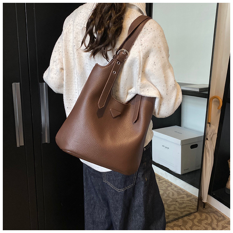 新款复古韩系轻奢手提水桶包洋气高颜值气质通勤腋下女包