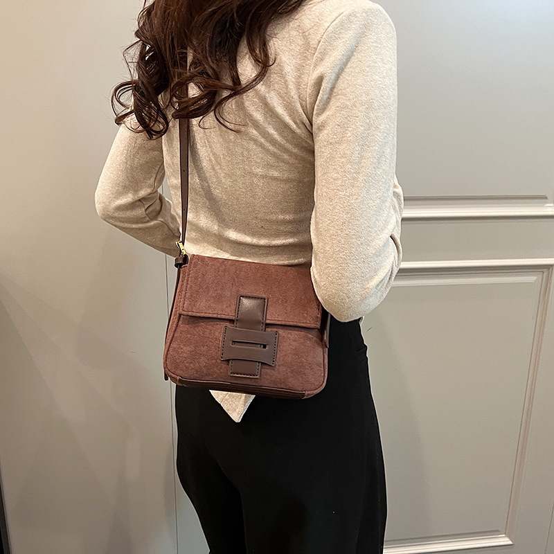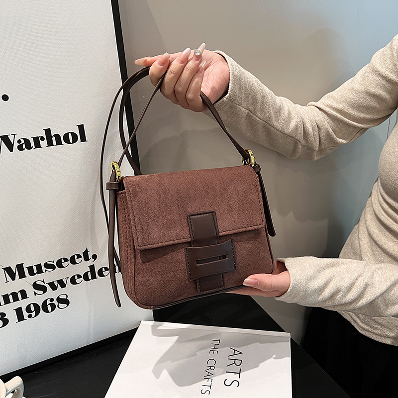 小众质感麂皮绒腋下包包女新款潮复古小方包大容量通勤包