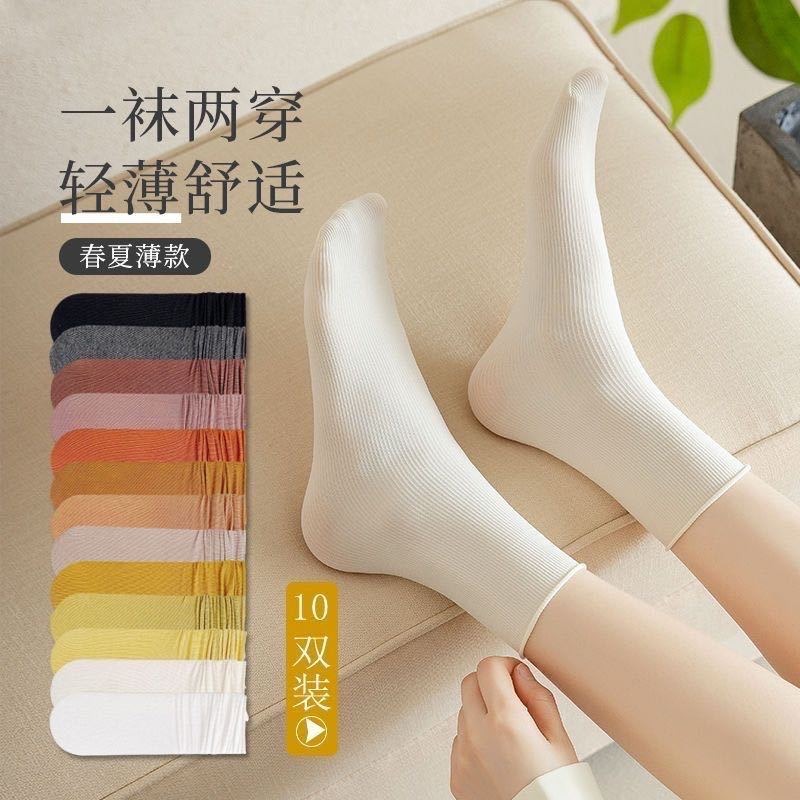 冰冰袜春夏韩系天鹅绒多巴胺袜子女中筒袜薄款吸汗糖果色女士堆堆袜
