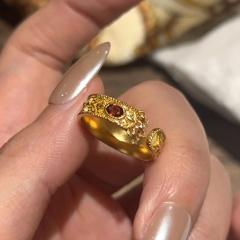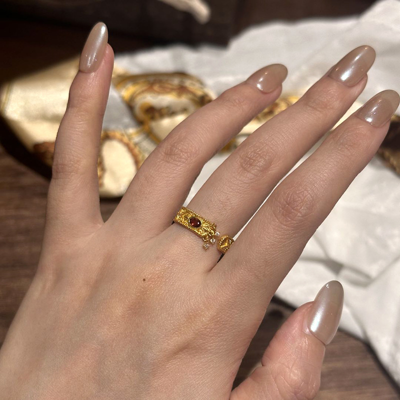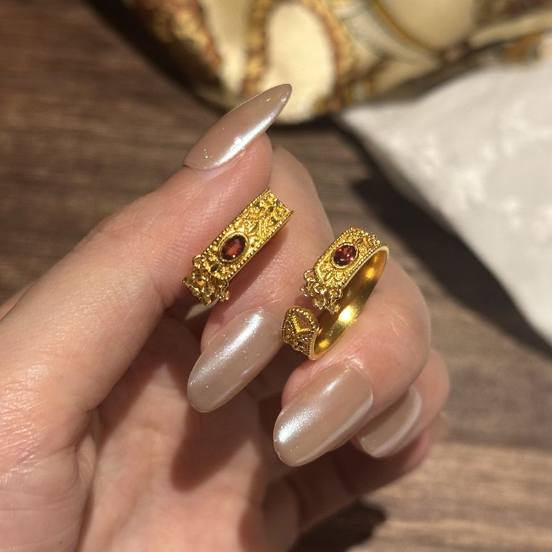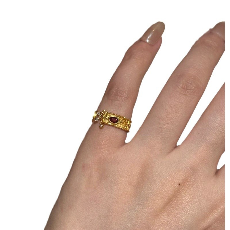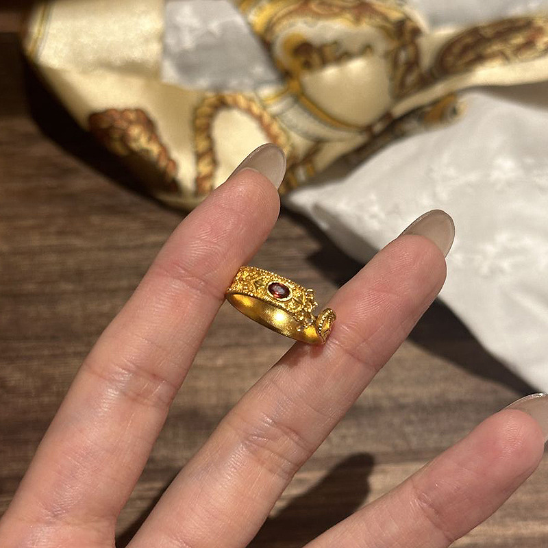 小红书爆款红魅宝石戒复古新中式宫廷风高级雕刻设计招财护佑指环