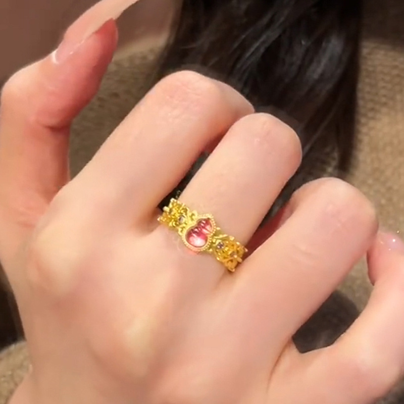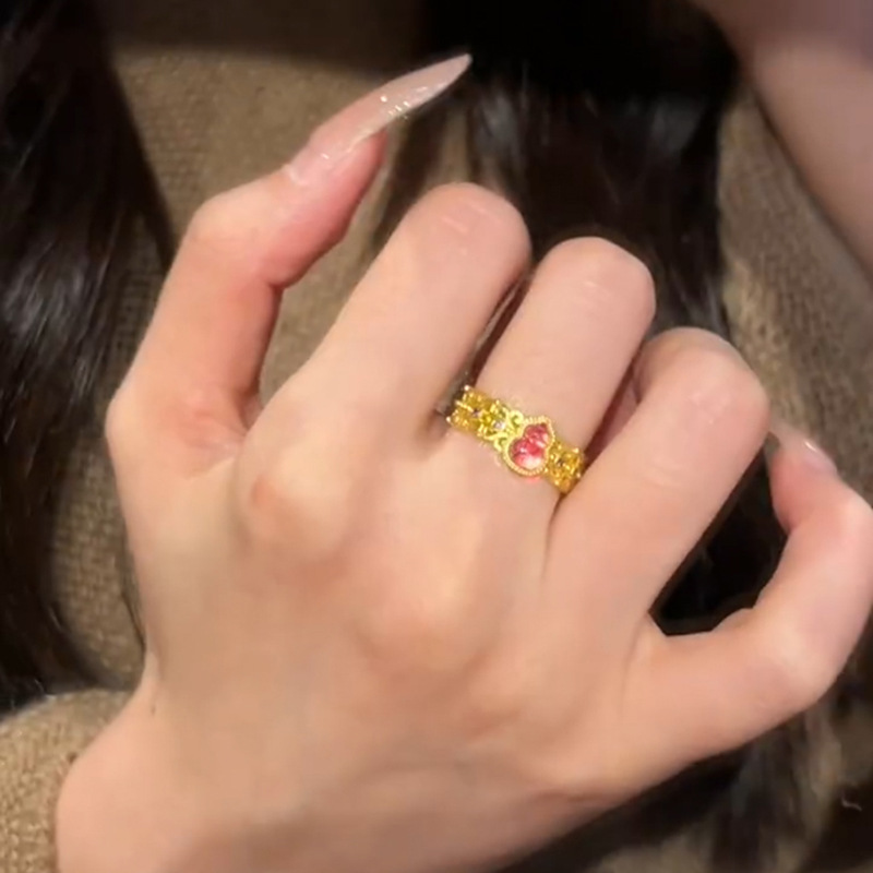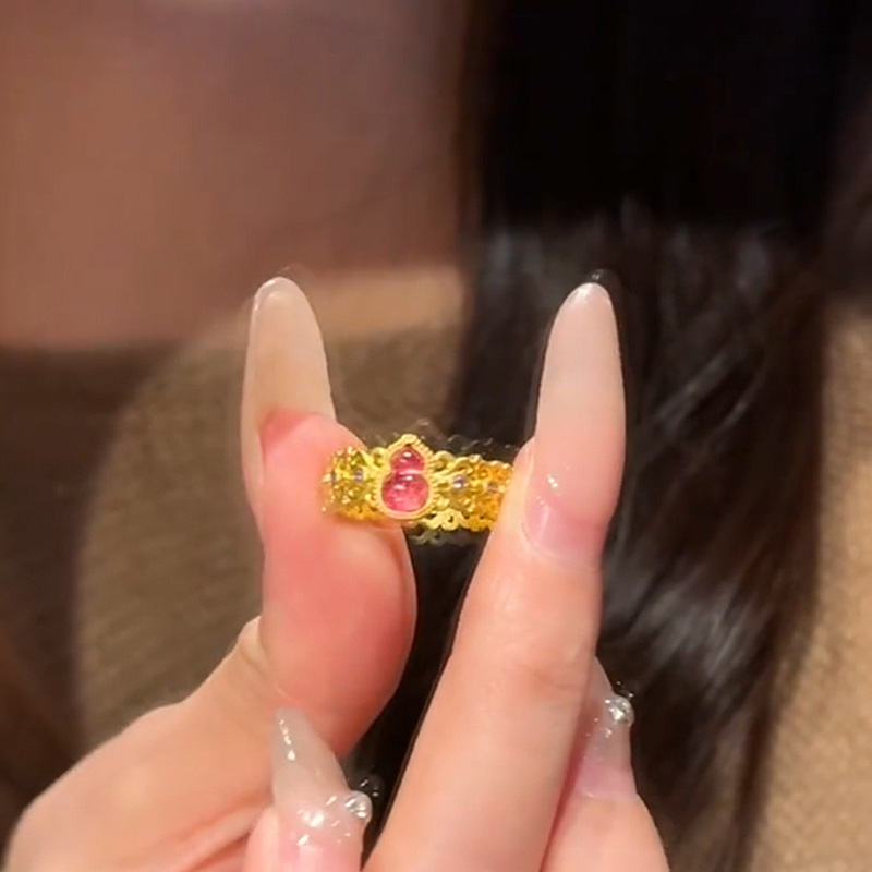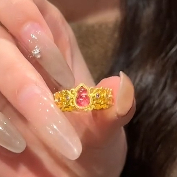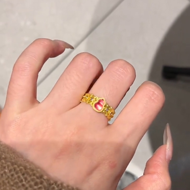 小红书爆款粉嫩金水晶葫芦戒指古法新中式福禄开口指环