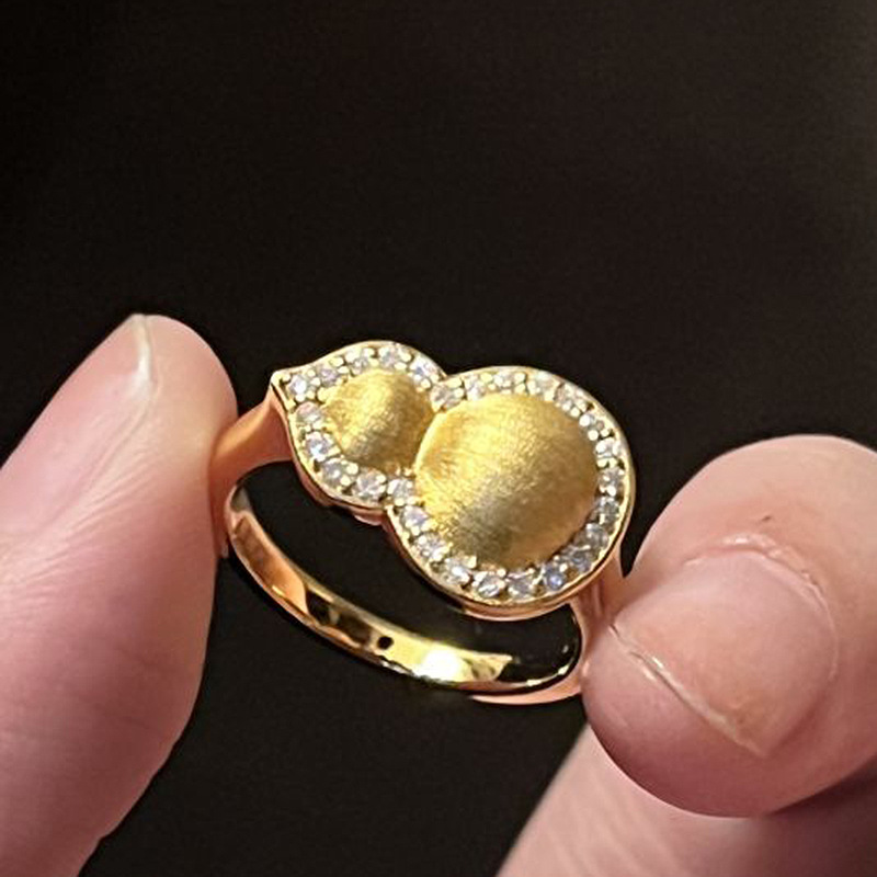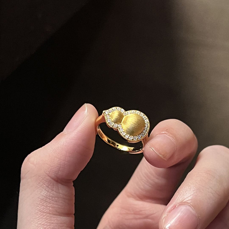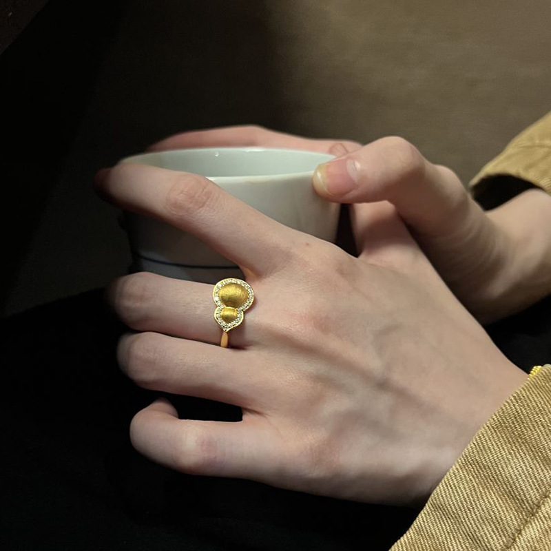 小红书爆款拉丝葫芦戒指新款古法新中式重工点钻指环一件代发
