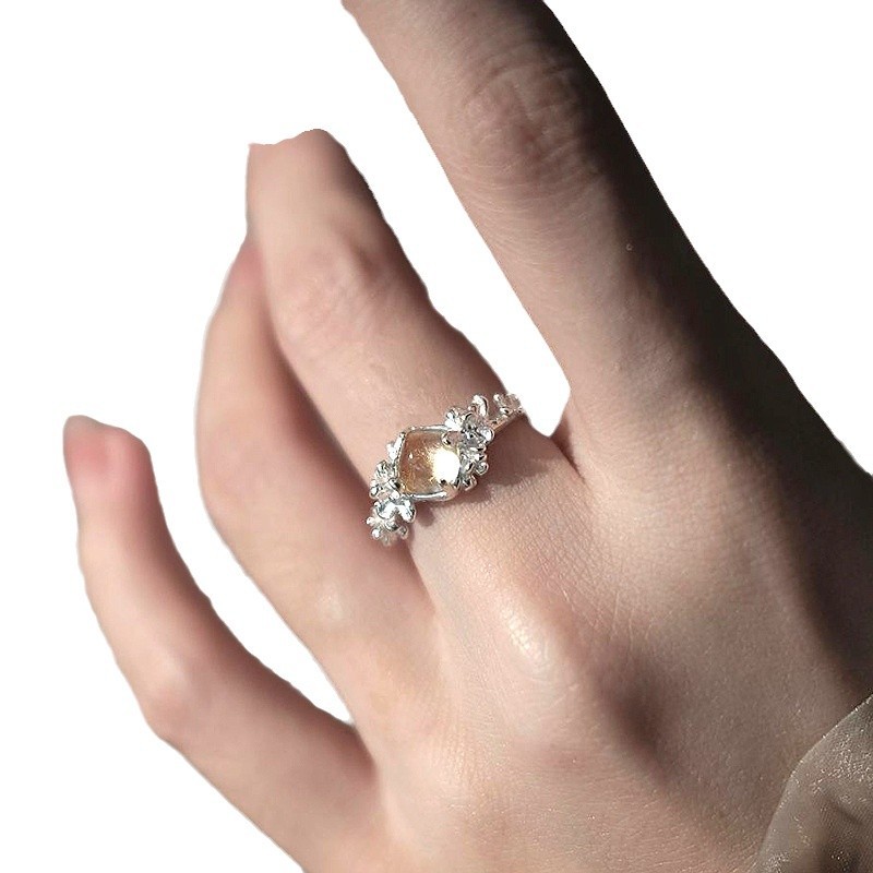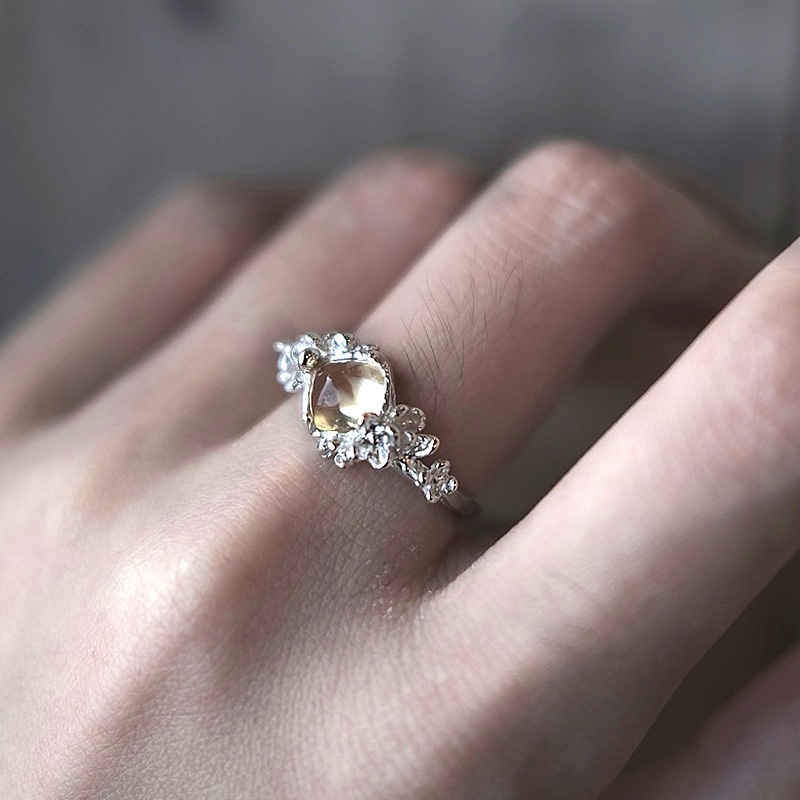 小红书爆款棉花糖黄水晶戒指女时尚轻奢秋冬搭配彩宝指环