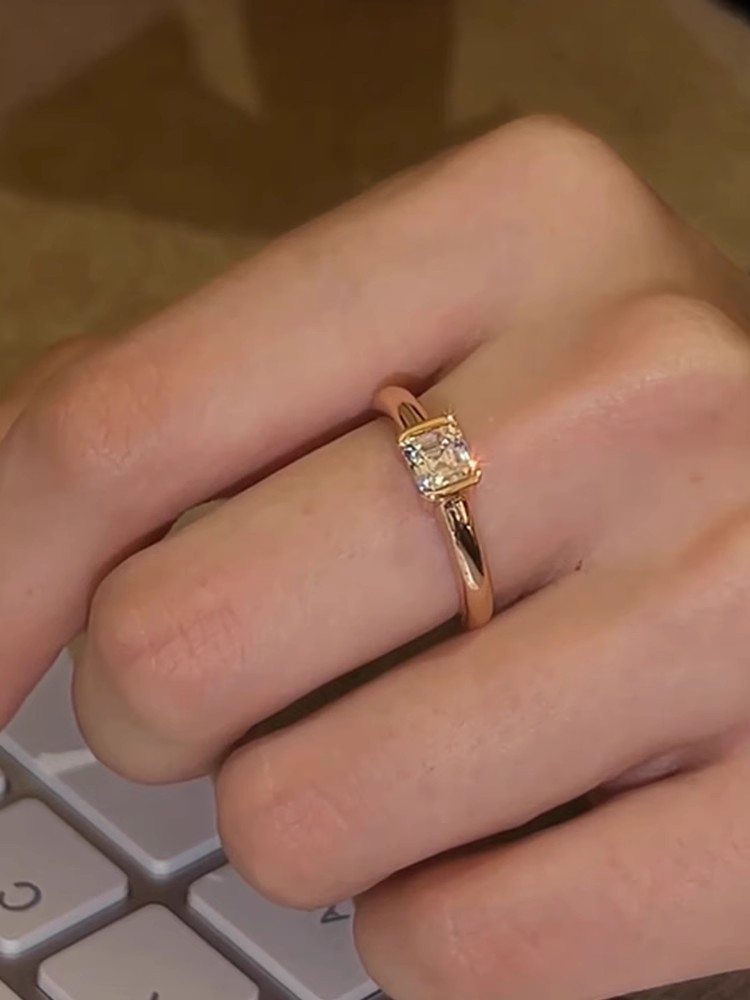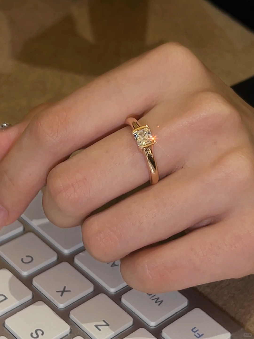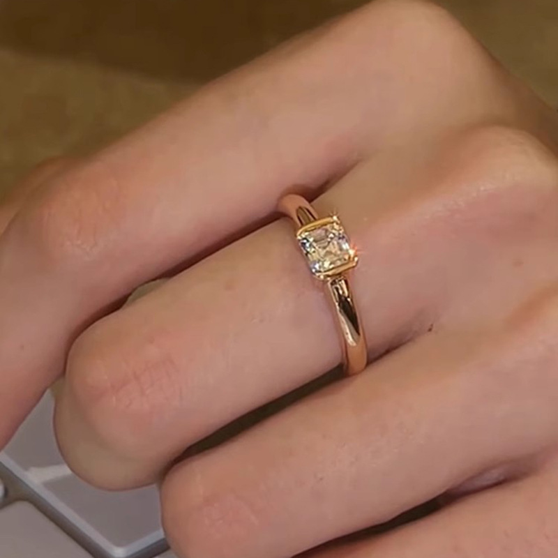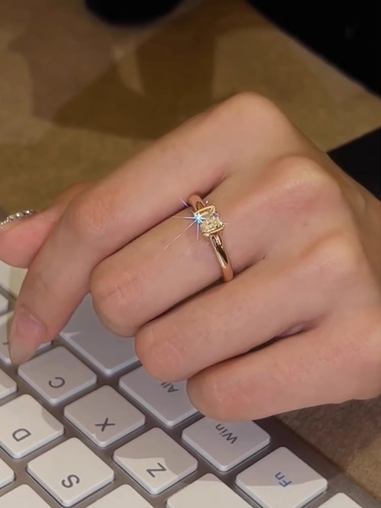 小红书同款爆闪小方镶钻戒指新款轻奢风手饰时尚设计开口指环
