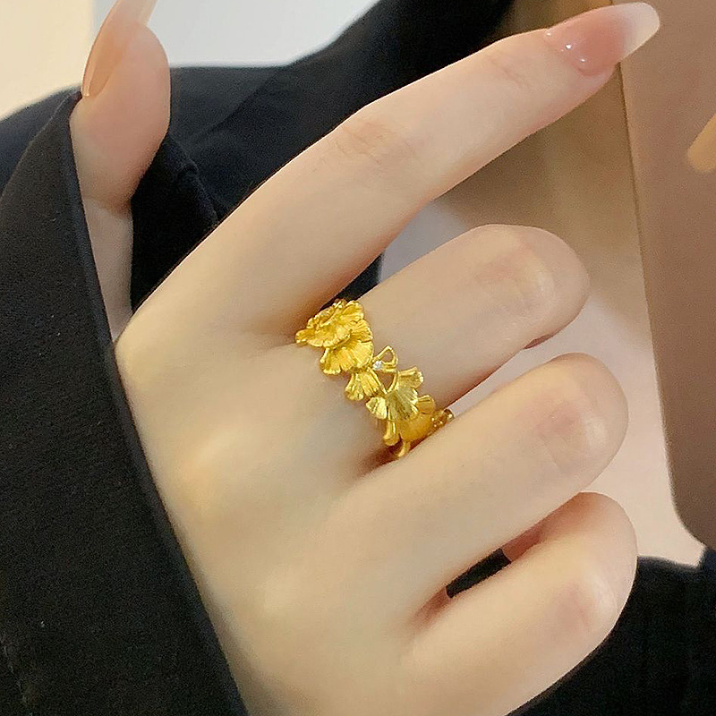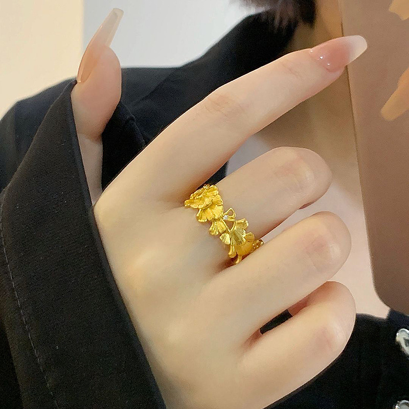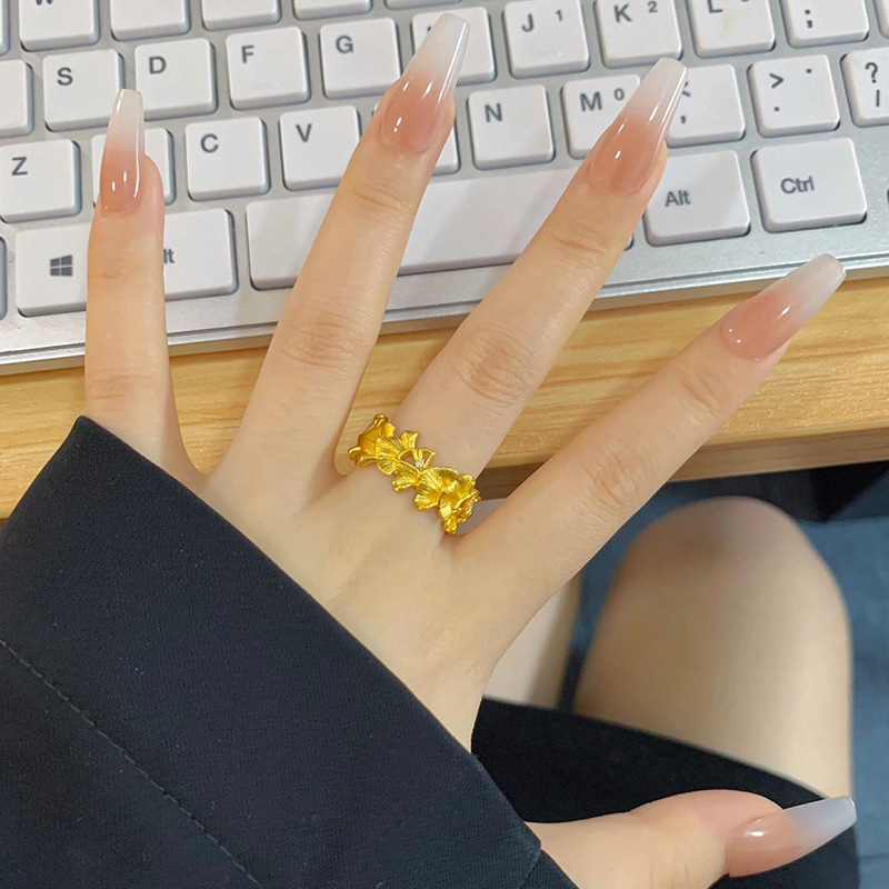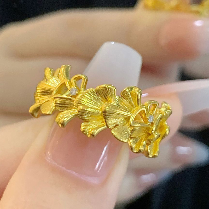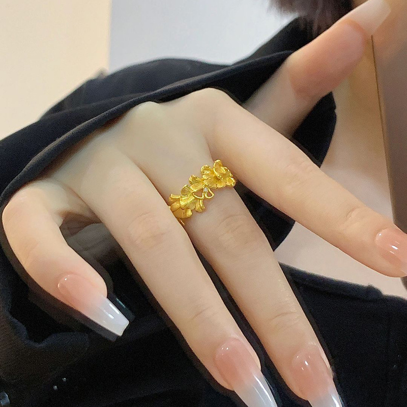 小红书爆款银杏花瓣戒指新款古法金色小花瓣精致指环