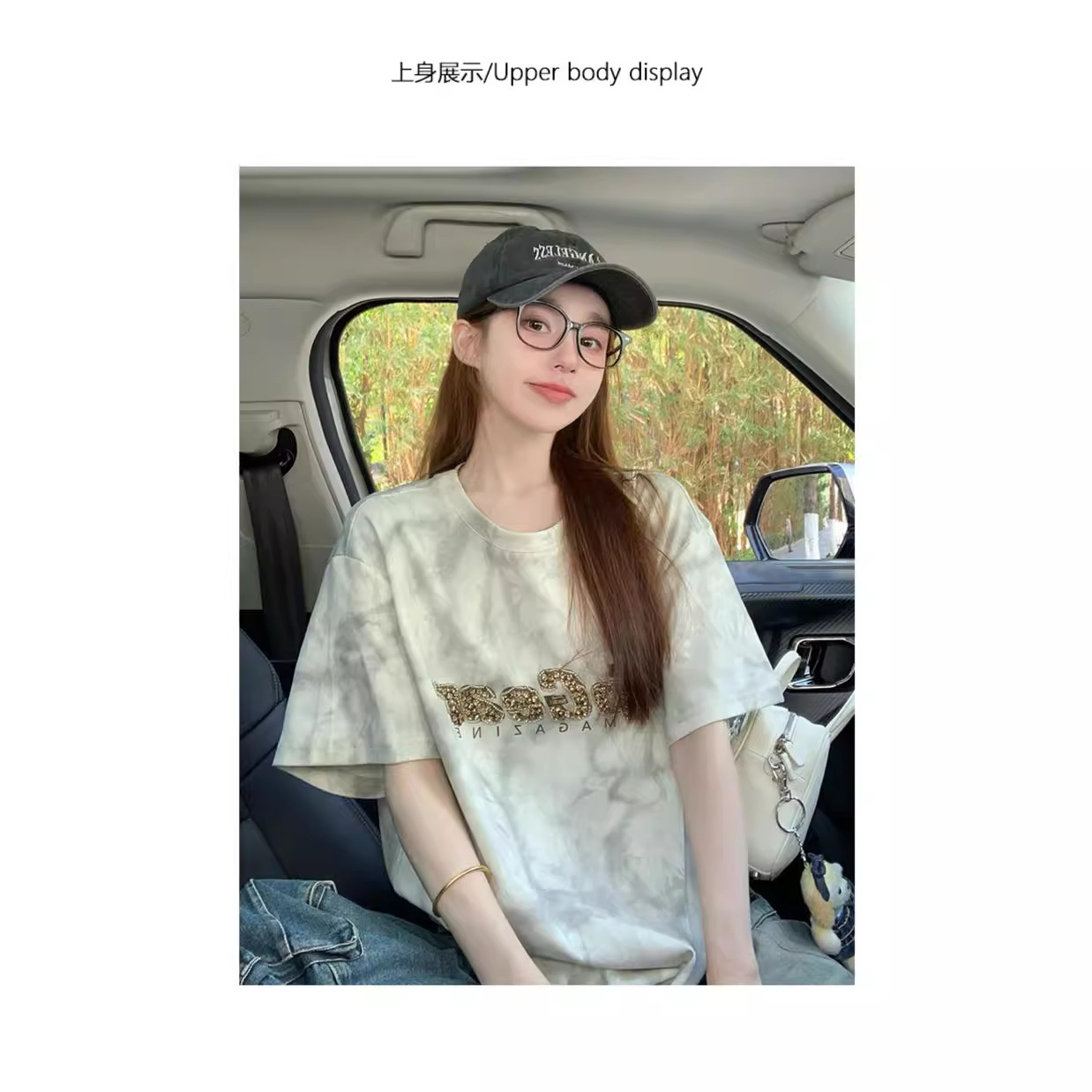 扎染重工烫钻欧货莫代尔短袖体恤女2025年新款爆款洋气时髦上衣潮