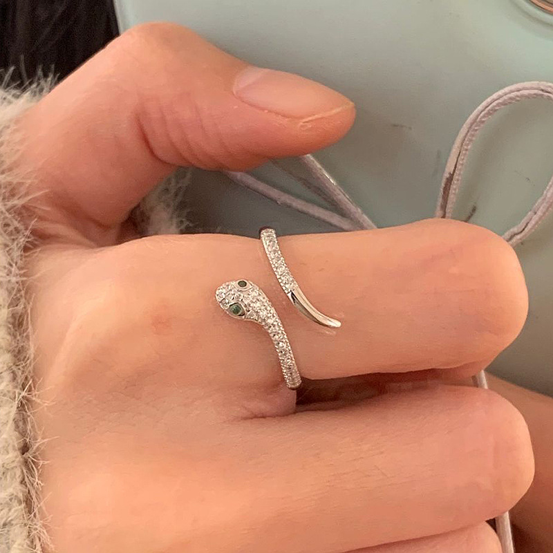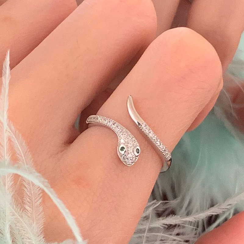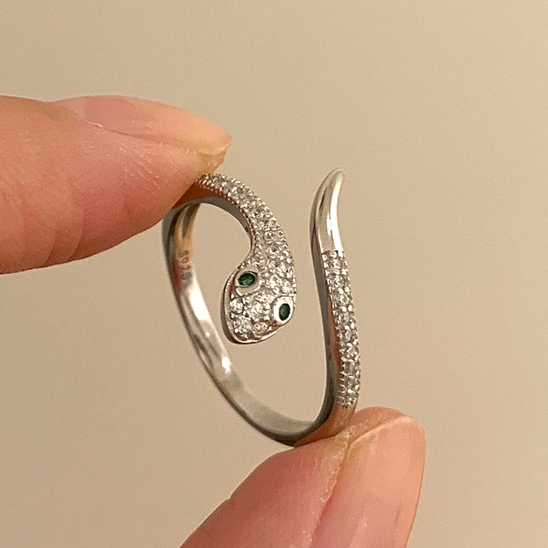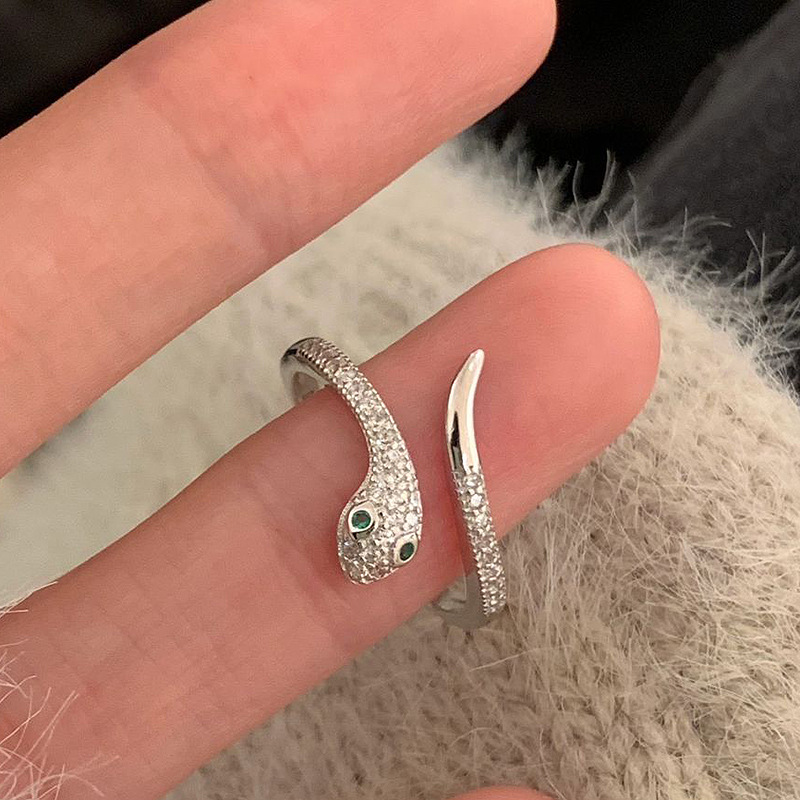 小红书爆款银色小灵蛇戒指女2025新款本命年蛇形满钻指环