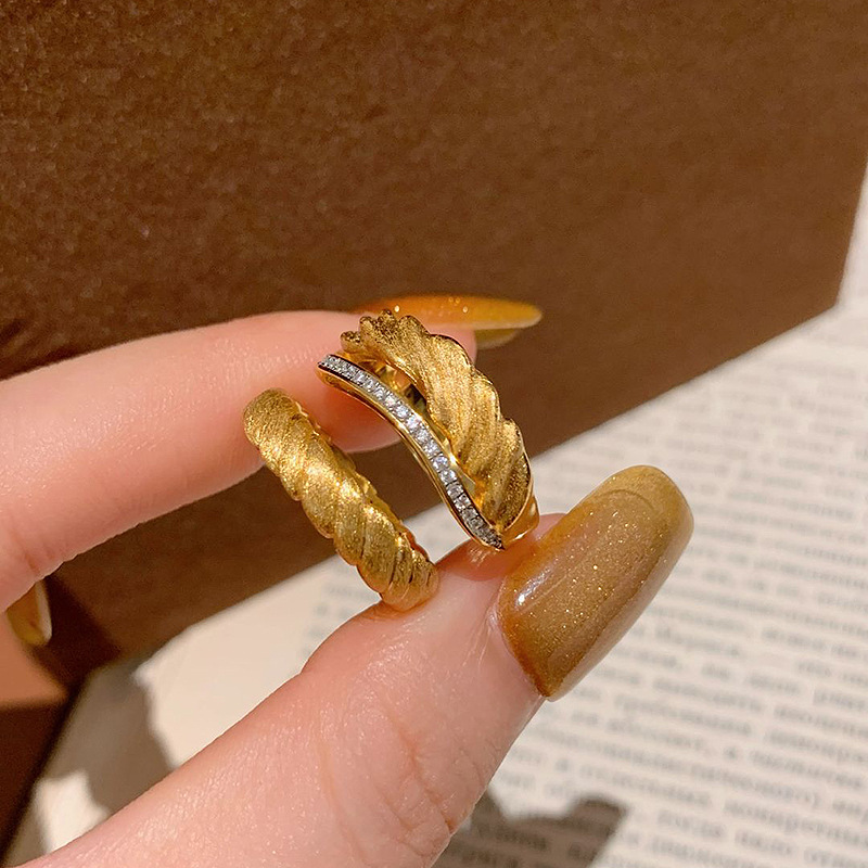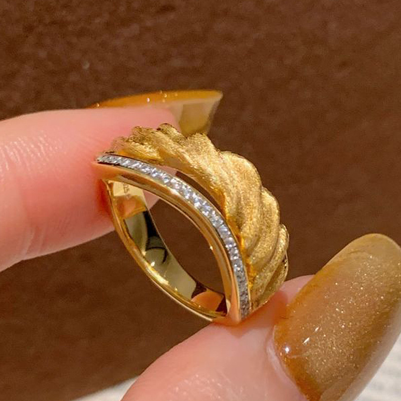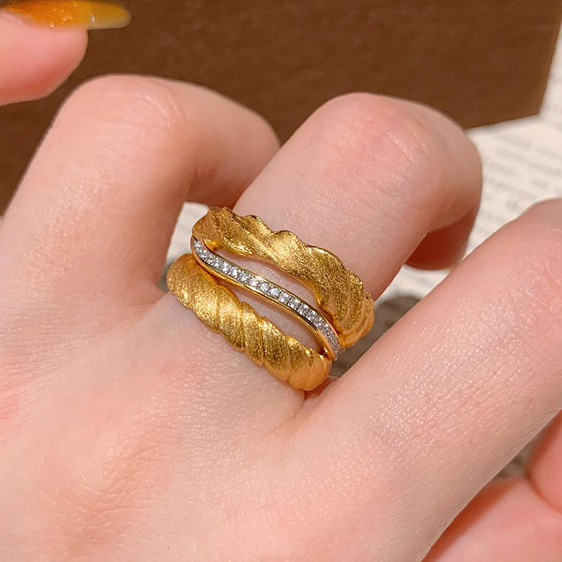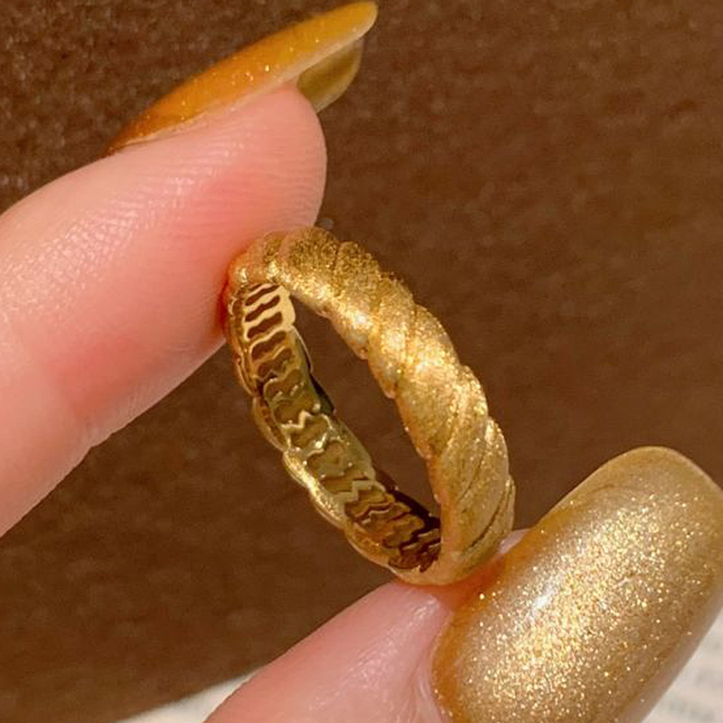 小红书爆款古法拉丝金色戒指新款超重工精致时尚指环