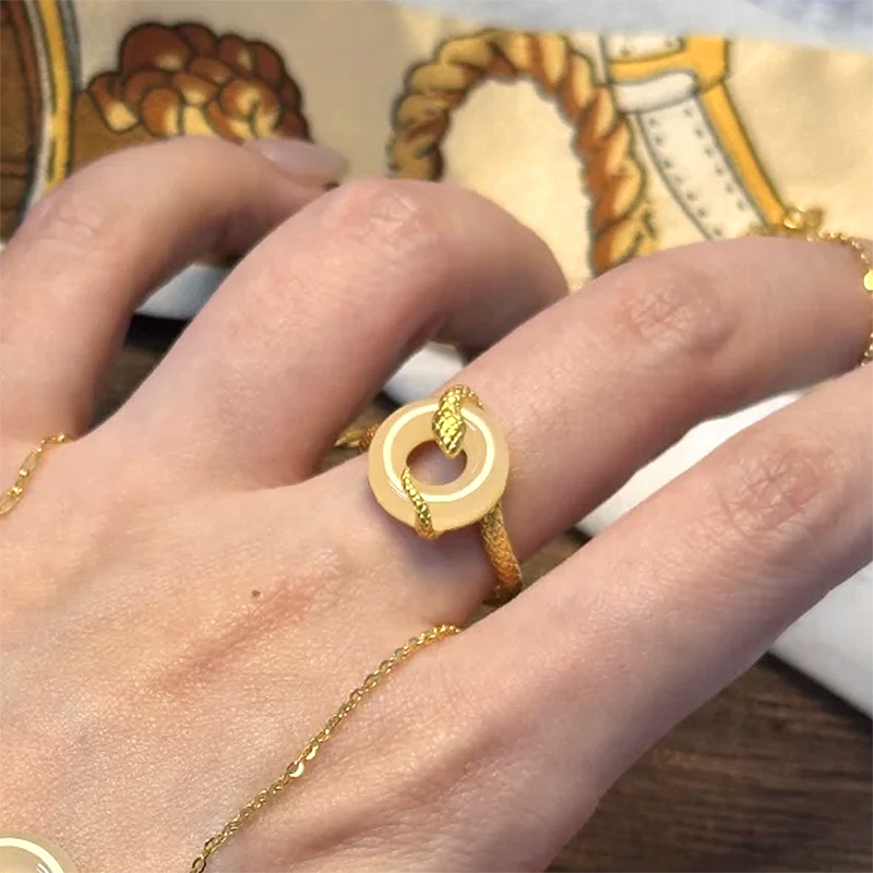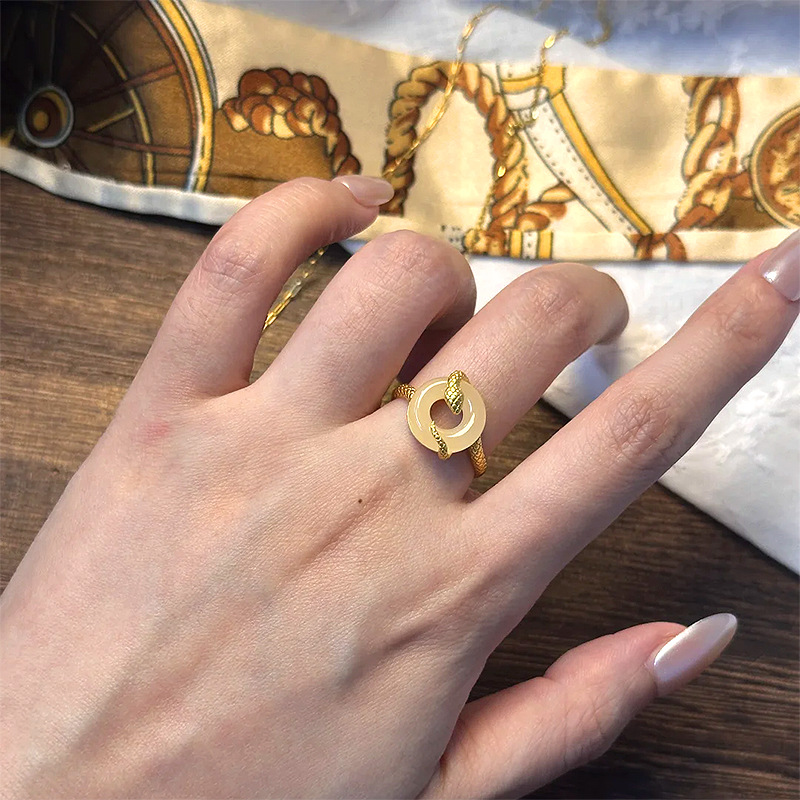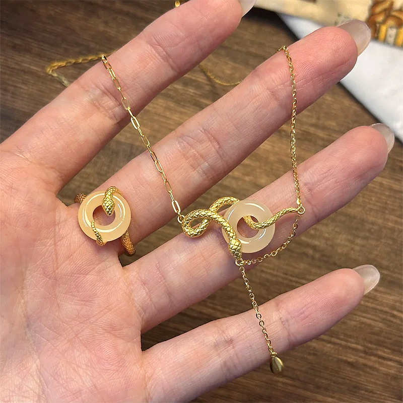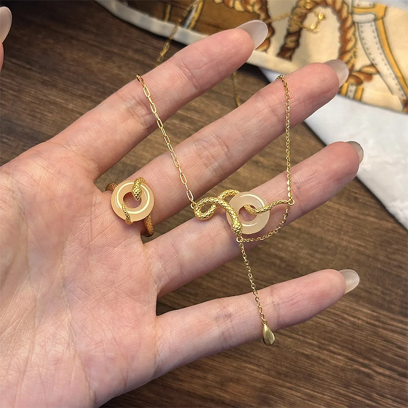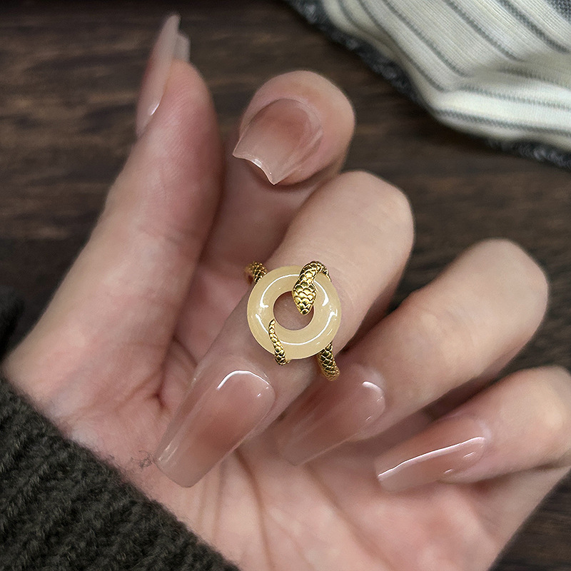 小红书爆款灵蛇绕玉戒指女新款生肖蛇白蛇缘起平安扣气质指环