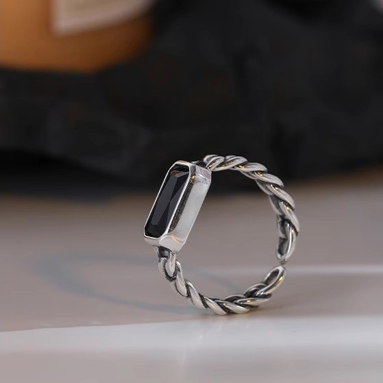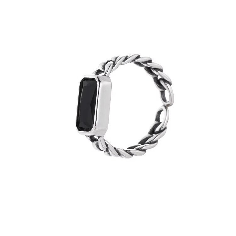 小红书爆款黑玛瑙链条戒指女百搭小众时尚个性开口食指戒