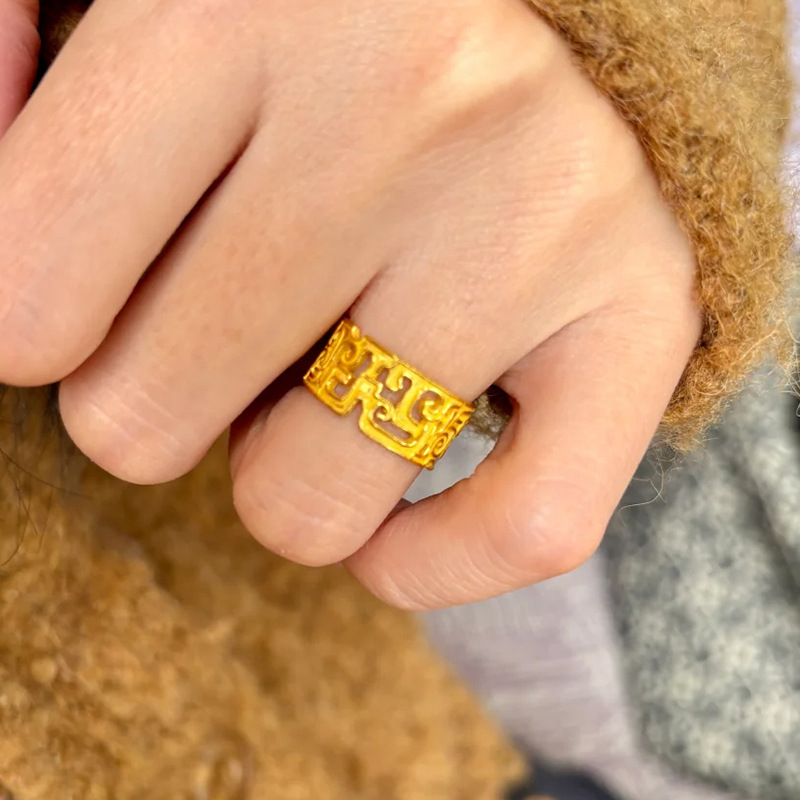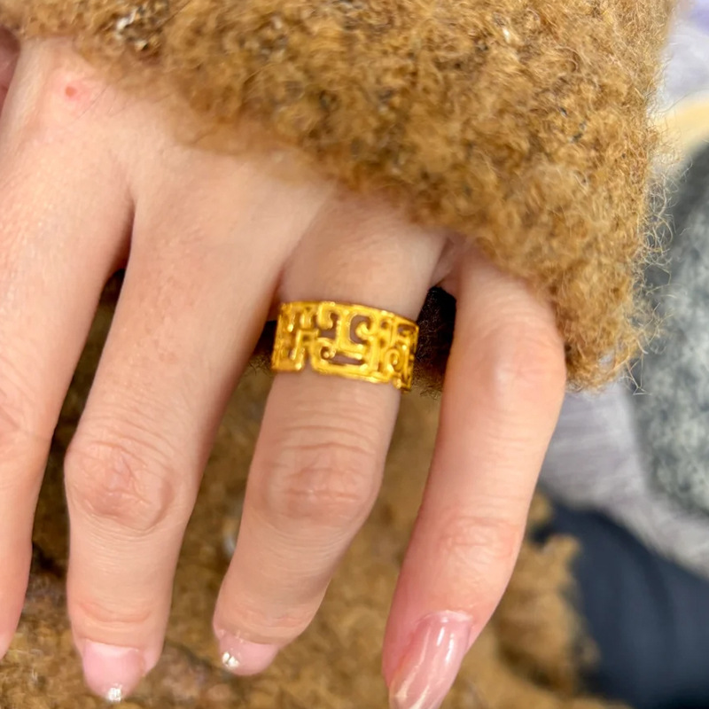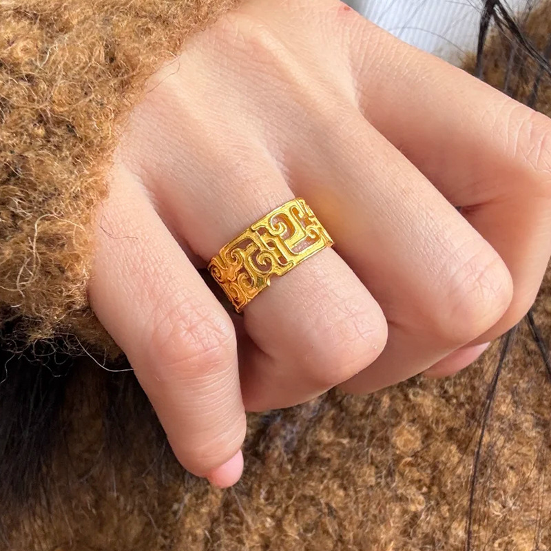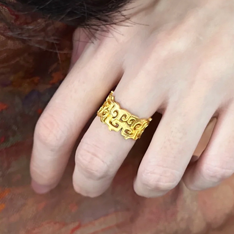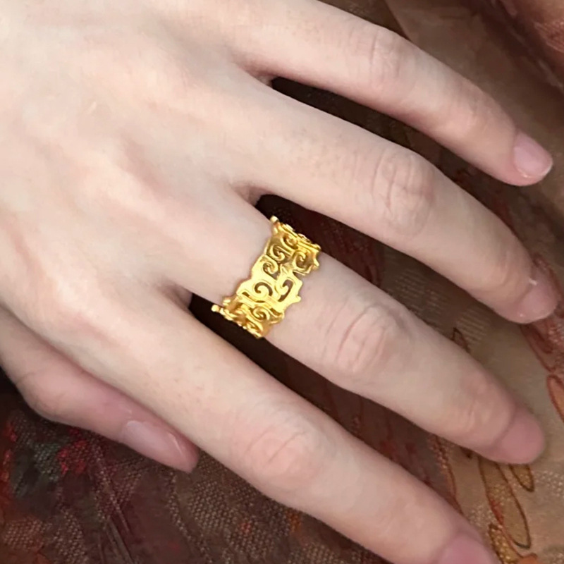 小红书爆款古法卷草纹镂空戒指女新中式复古典雅国风蟠螭纹样指环