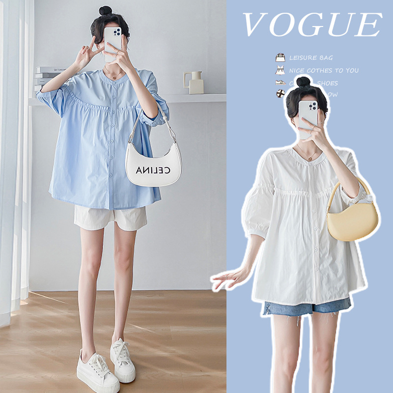 孕妇衬衫半身裙孕妈春夏季娃娃衫上衣孕妇白色衬衫职业工装夏宽松