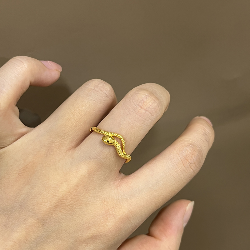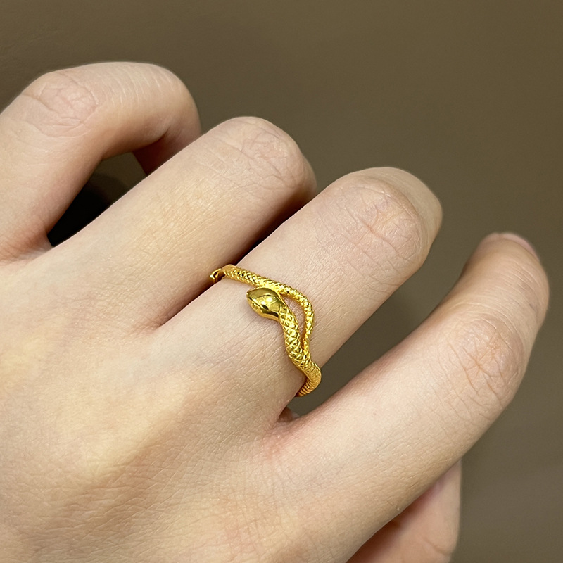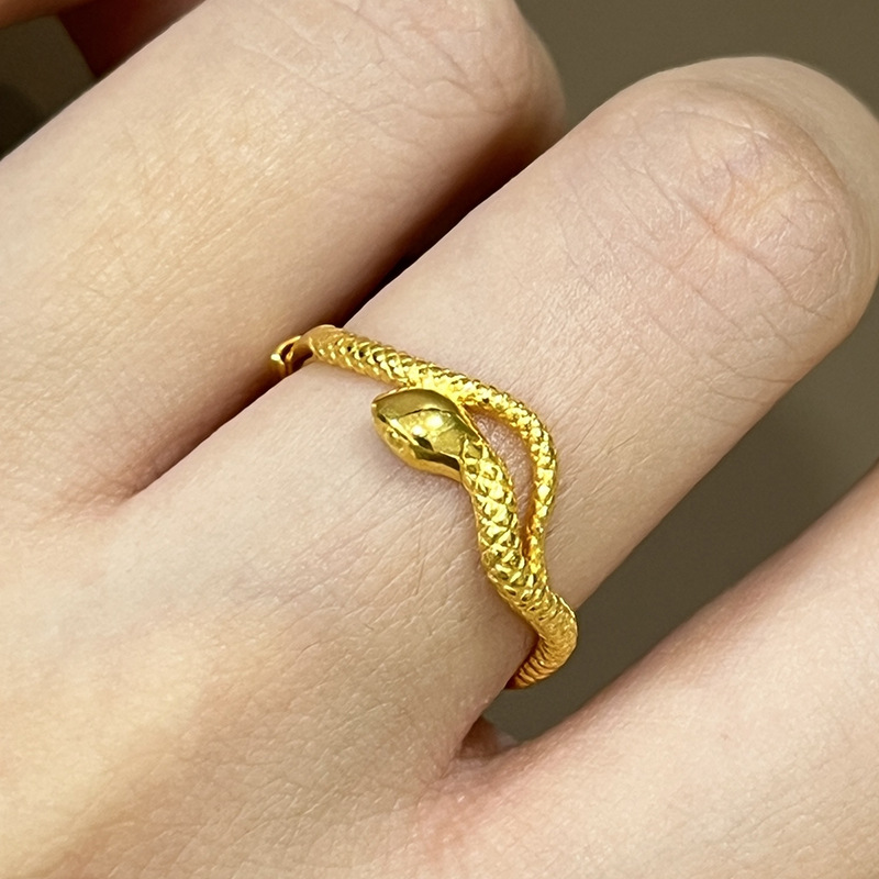 小红书爆款古法简约灵蛇戒指女新款时尚轻奢黄金色蛇形指环