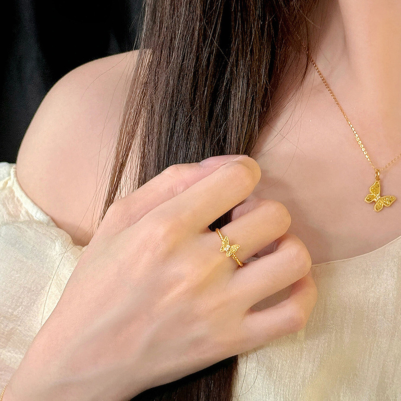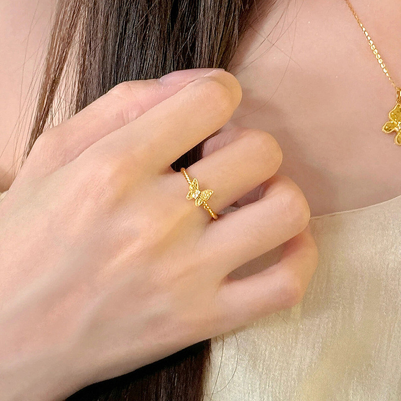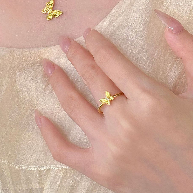 小红书同款爆闪碎金蝴蝶戒指新款时尚轻奢可调节指环一件代发