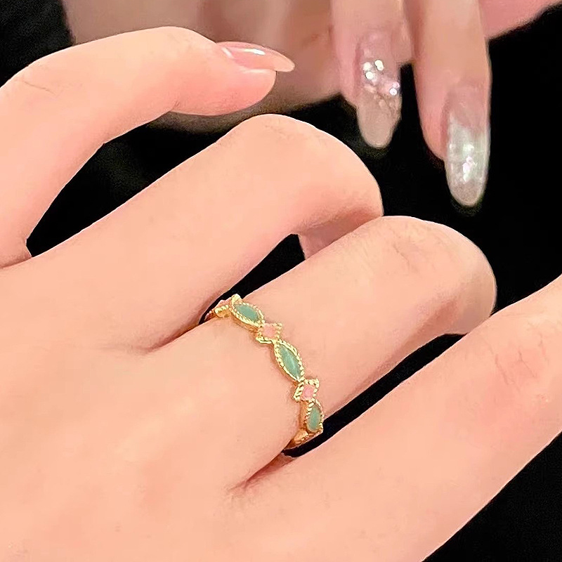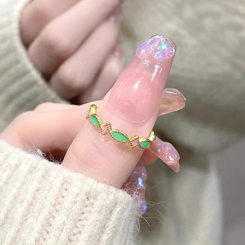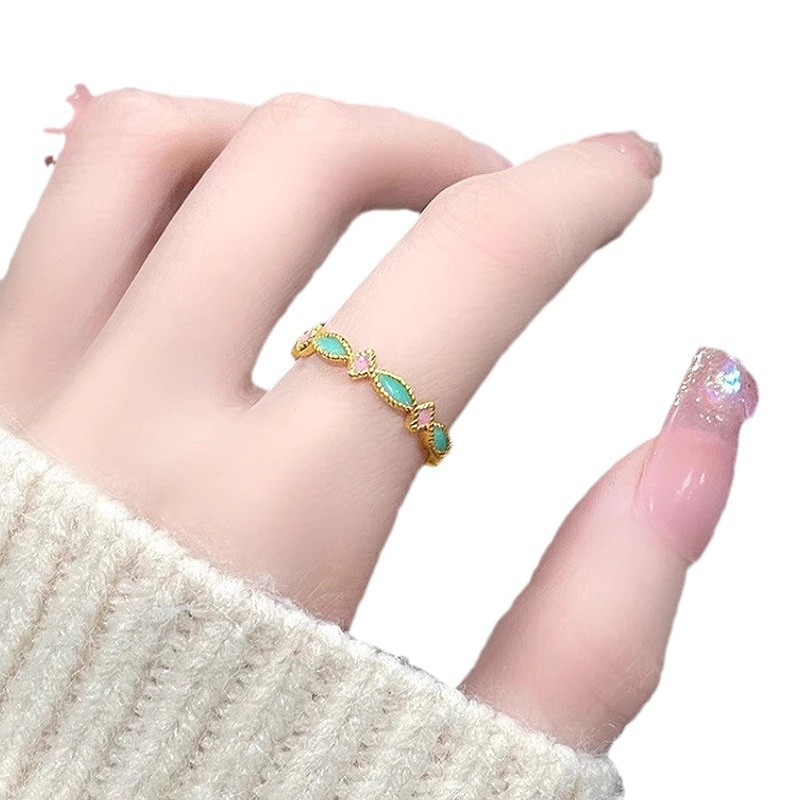 小红书爆款新中式高级感珐琅彩色小桃星戒指女粉色小众轻奢食指戒