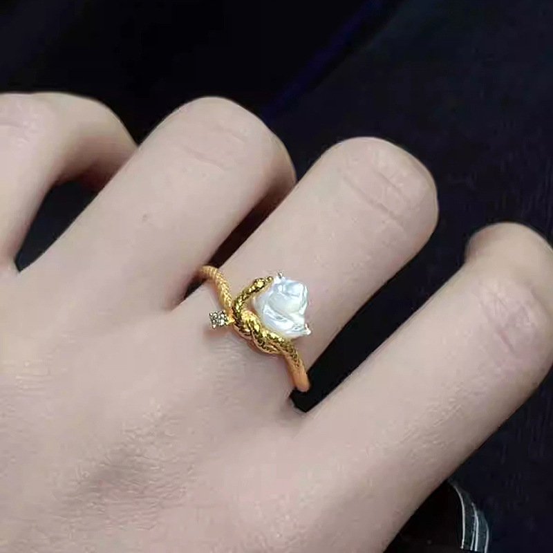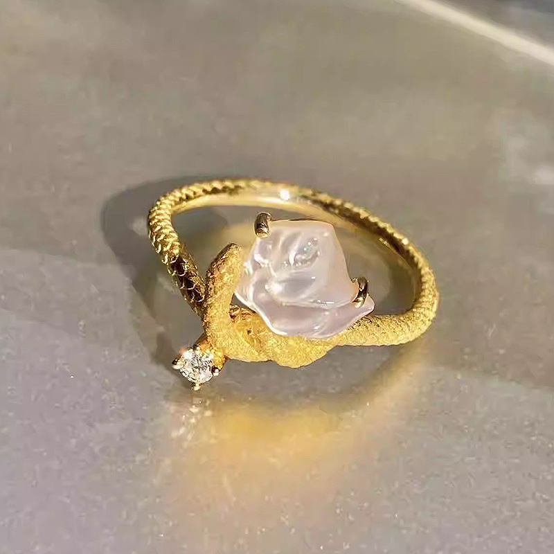 小红书爆款白玫瑰灵蛇戒指新款小众高级感各个性指环