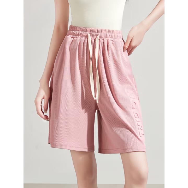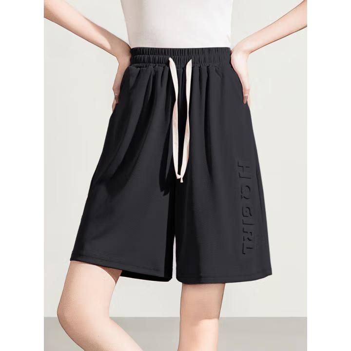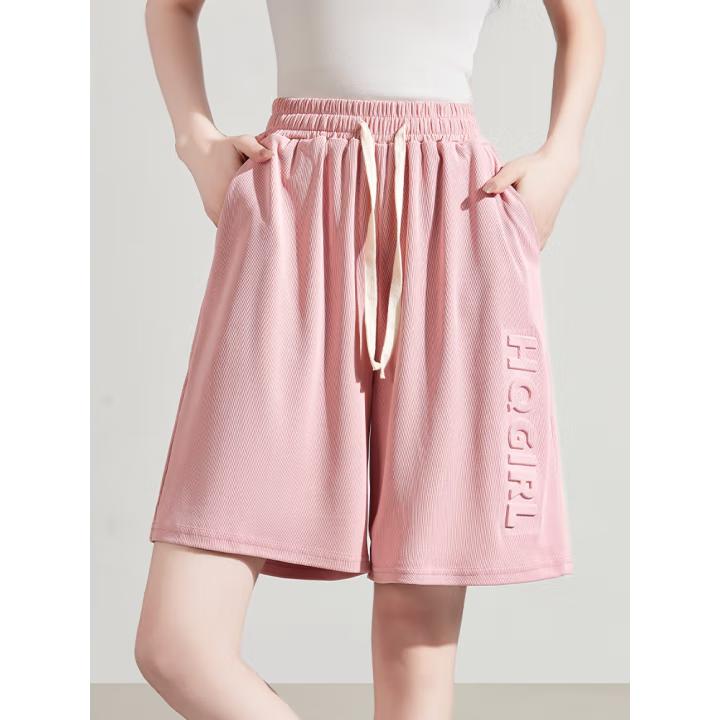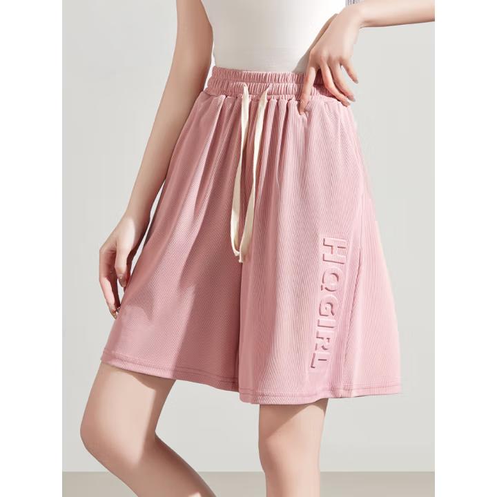 短裤女薄款高腰休闲裤子宽松显瘦冰丝阔腿五分裤