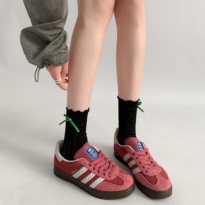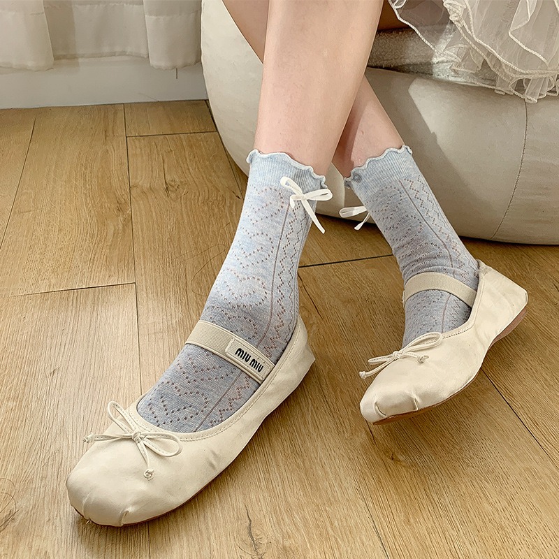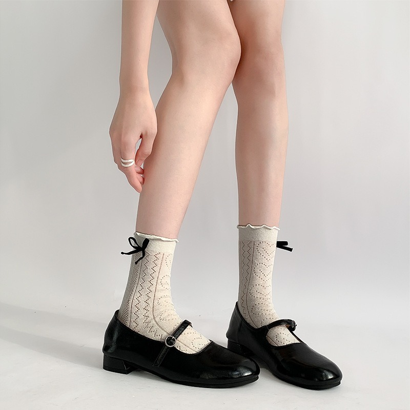提花透气夏芭蕾风袜子蝴蝶结花边蕾丝袜女夏季薄款镂空白色中筒袜