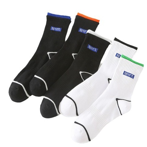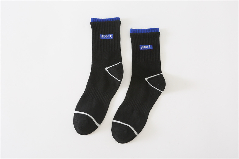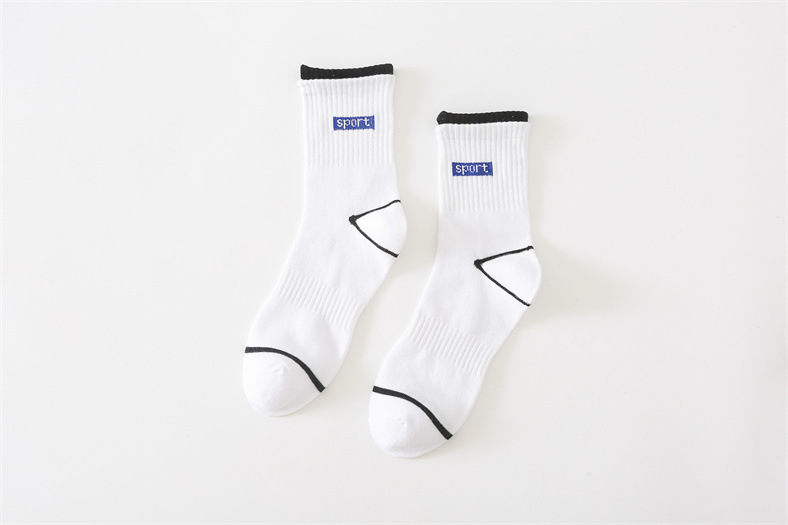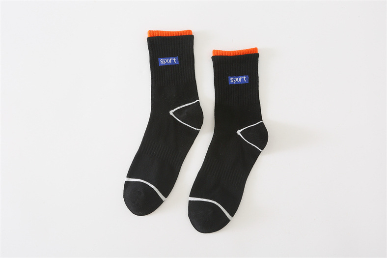 春秋新品高橡筋字母系列情侣款运动棉袜简约黑白拼色中长筒男女袜