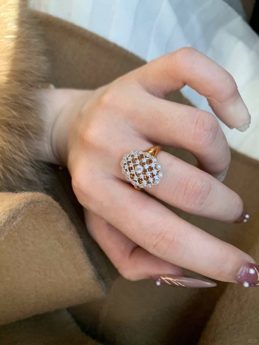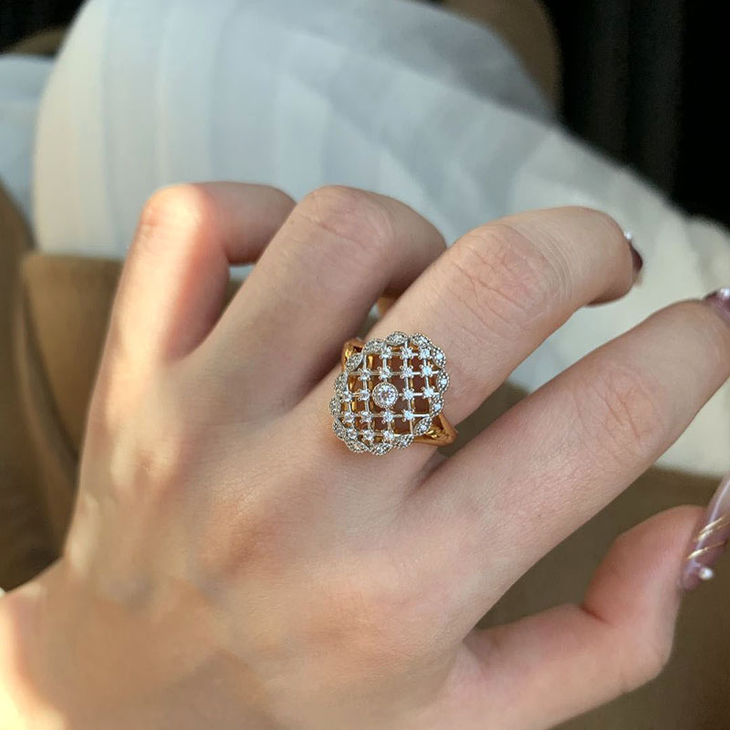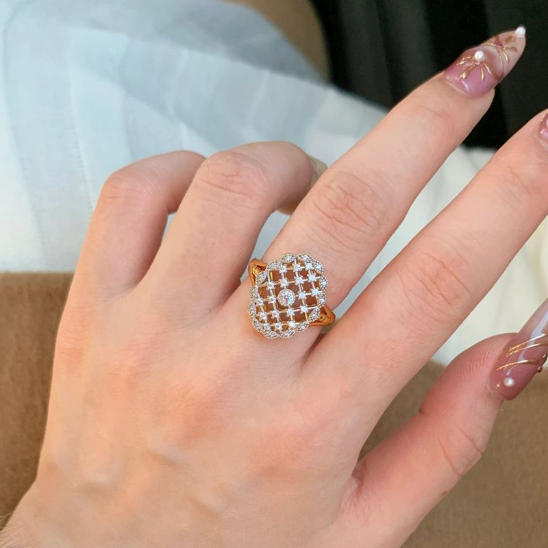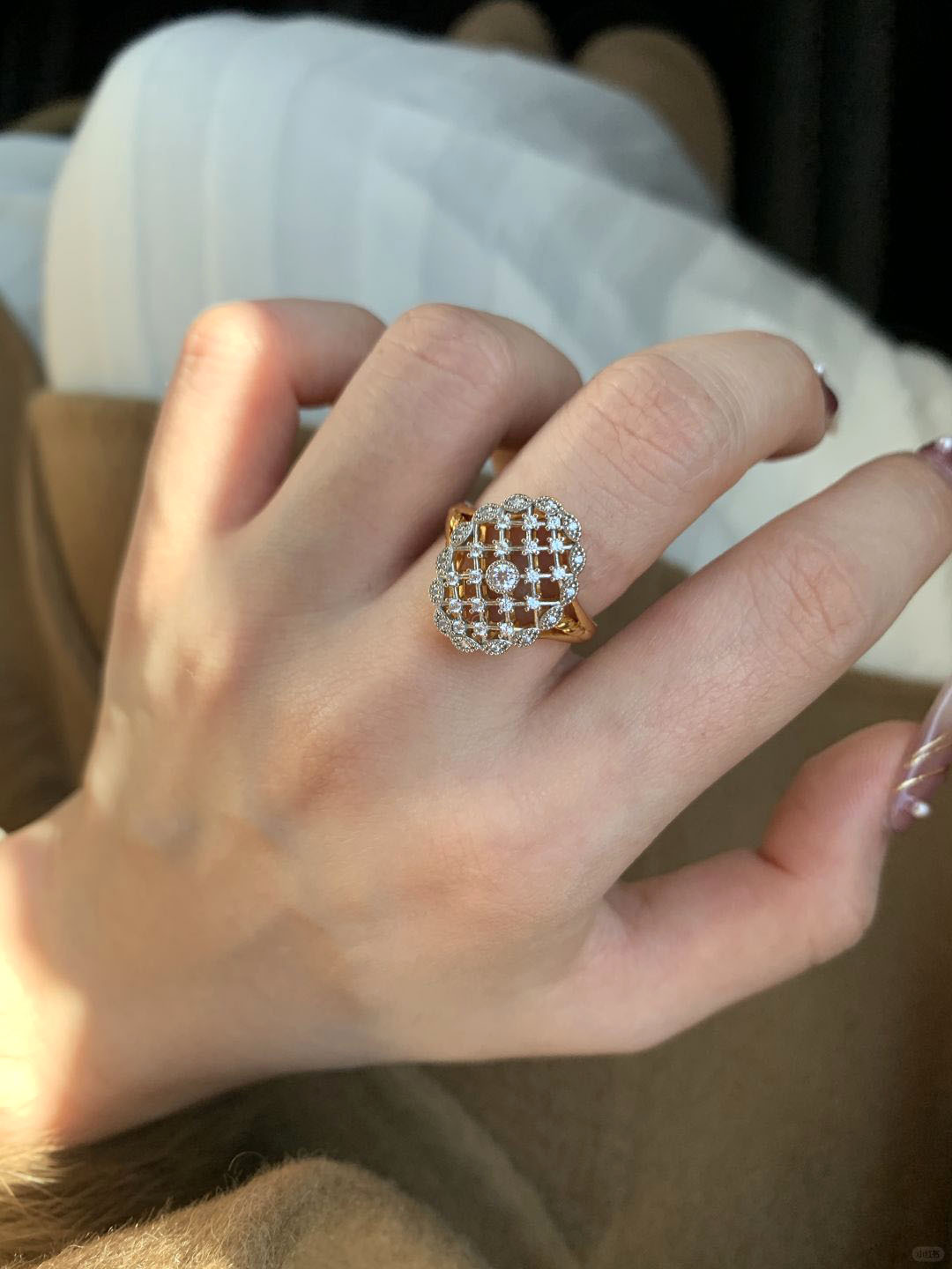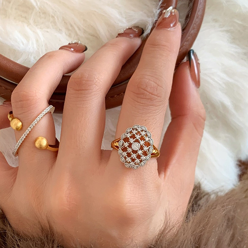 小红书爆款镂空爆闪满钻戒指古法重工鸽子蛋微镶精致指环