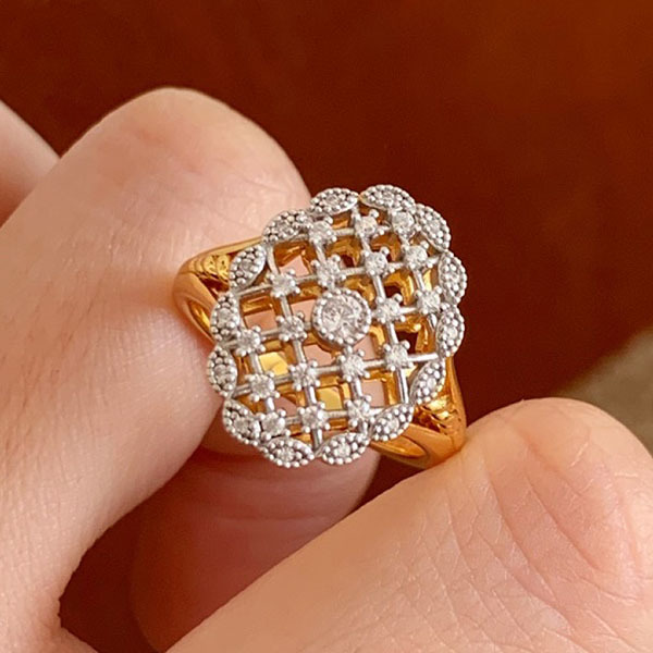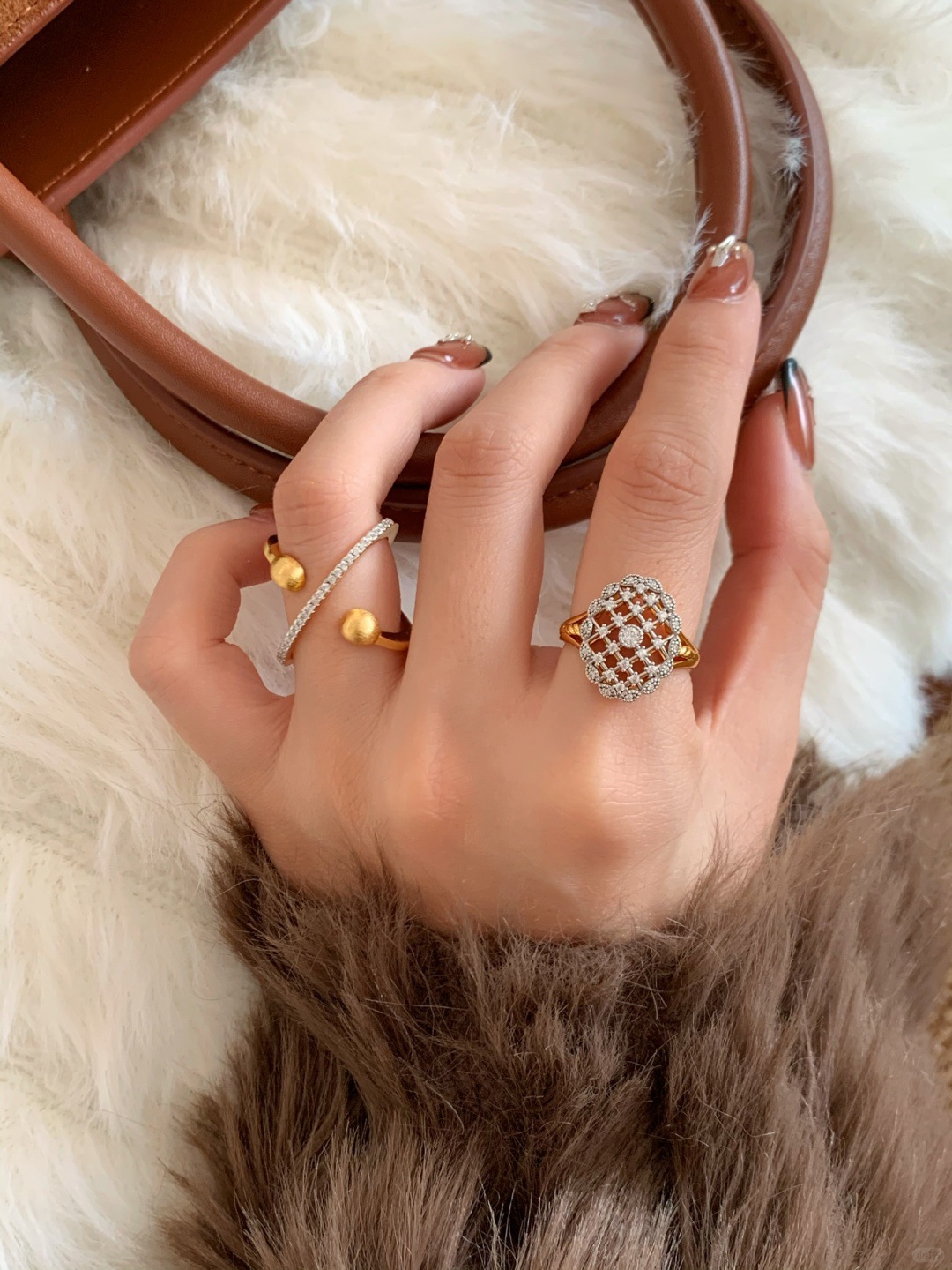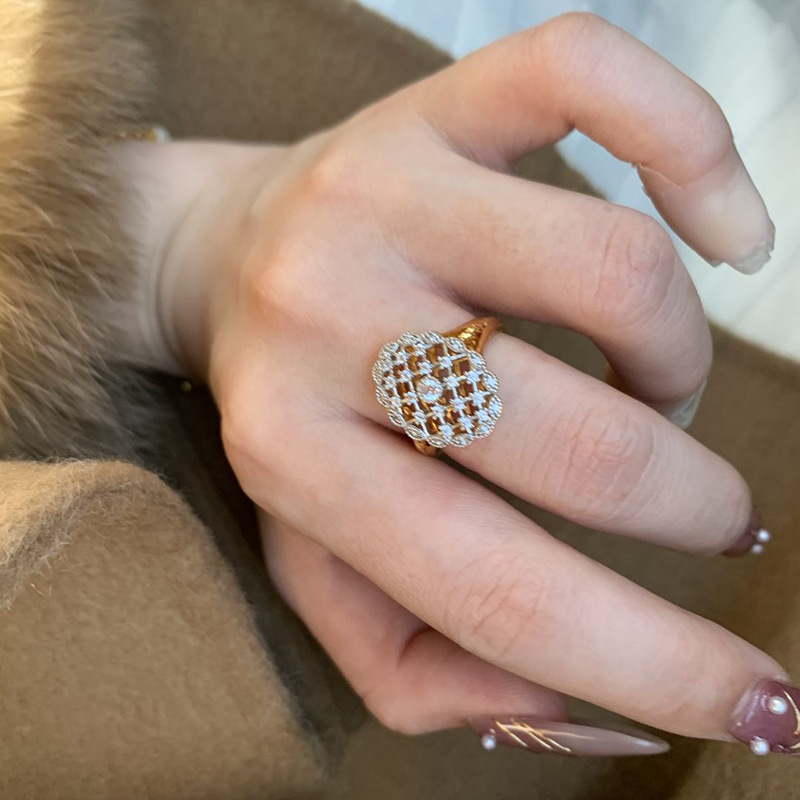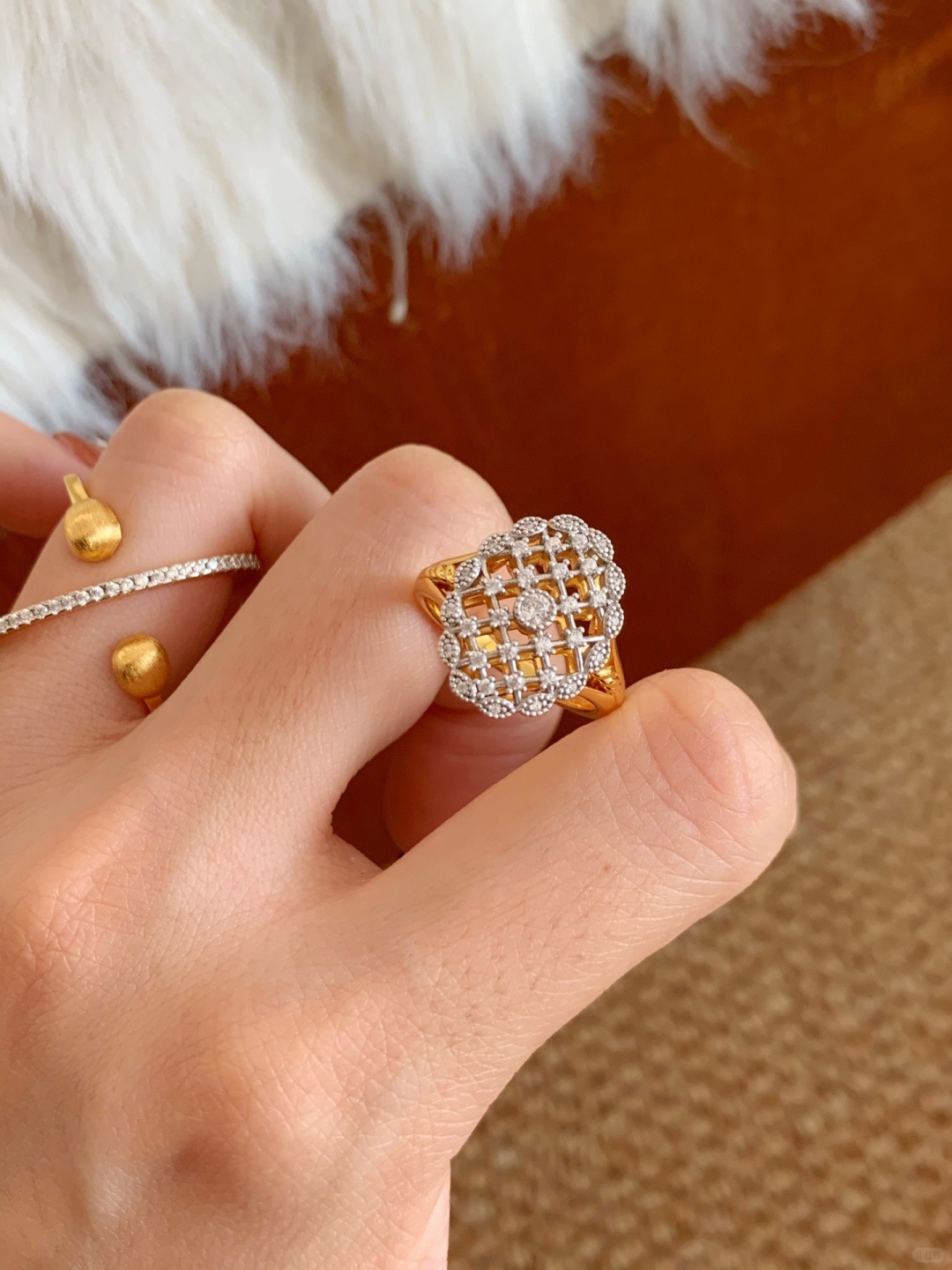 小红书爆款镂空爆闪满钻戒指古法重工鸽子蛋微镶精致指环