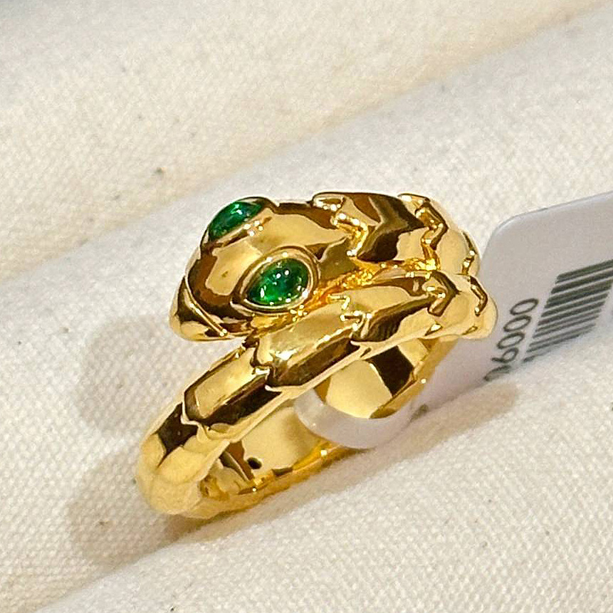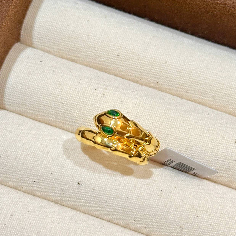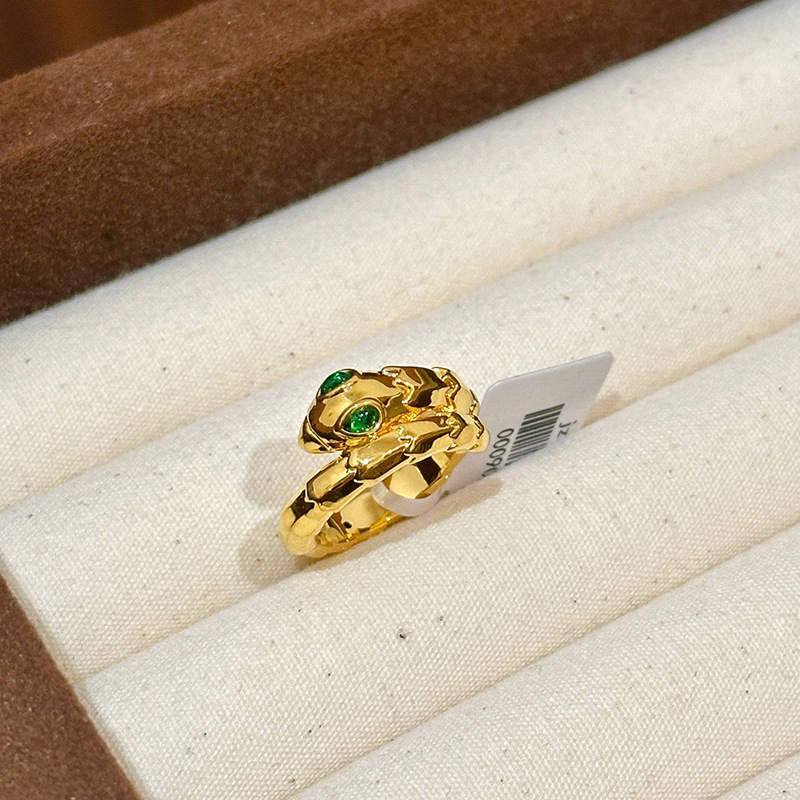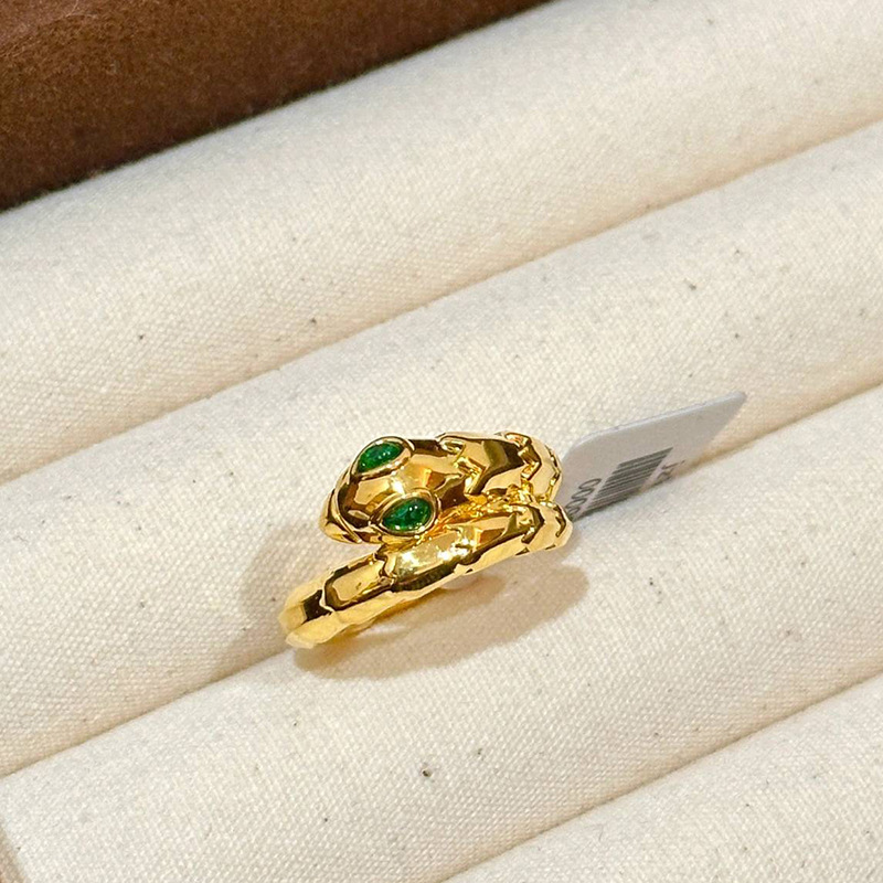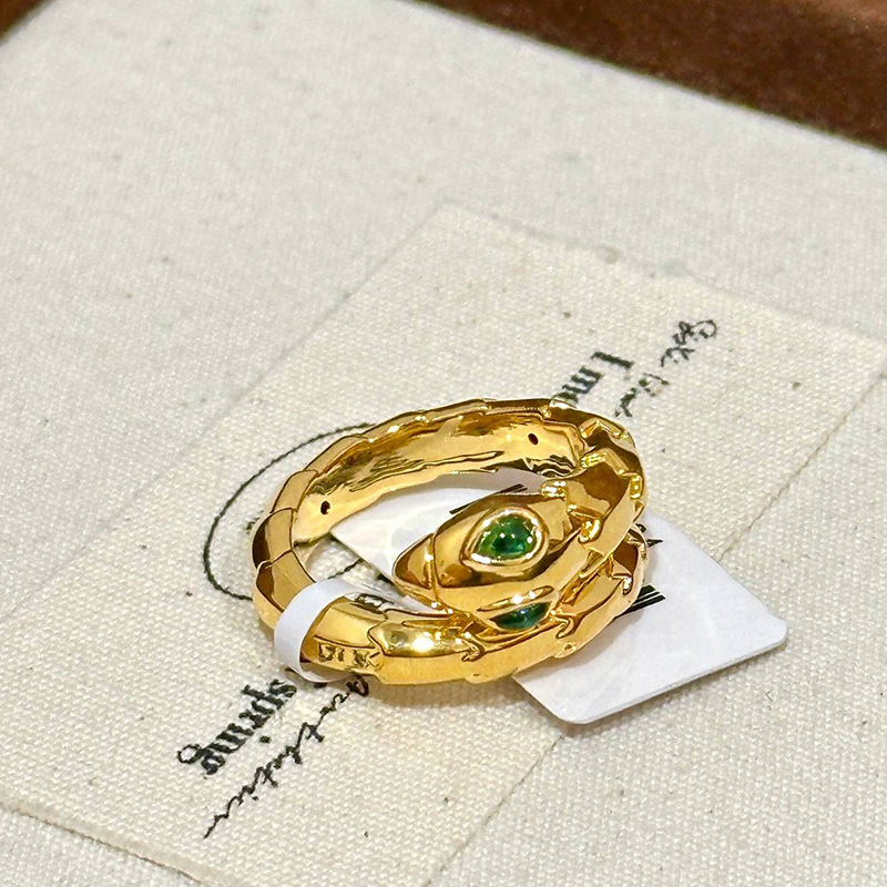 小红书爆款绿宝灵蛇戒指女新款轻奢时尚重工祖母绿蛇形手饰品