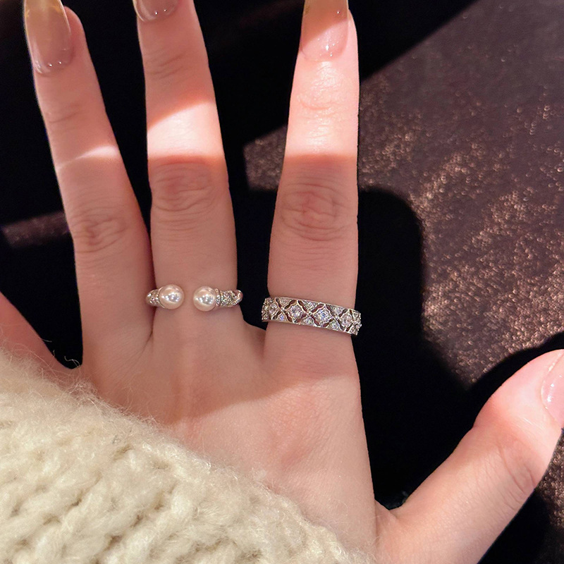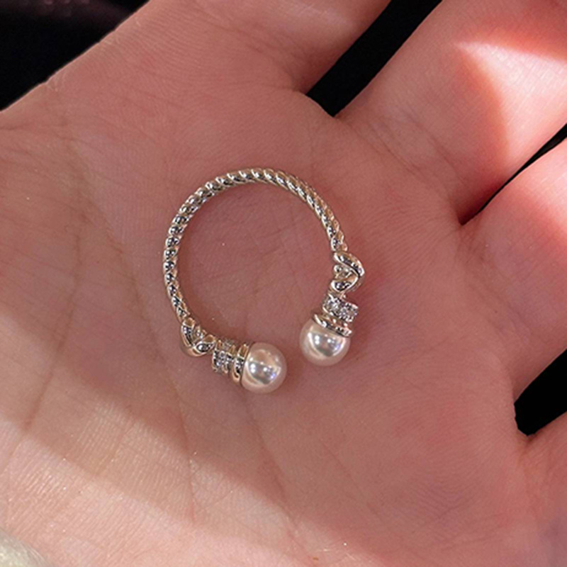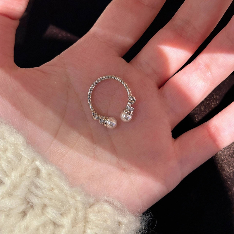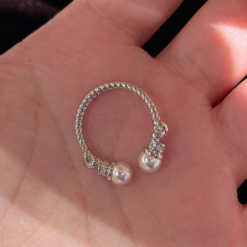 小红书新款麻花珍珠戒高颜值设计拉丝轻奢小众个性时尚潮流饰品女