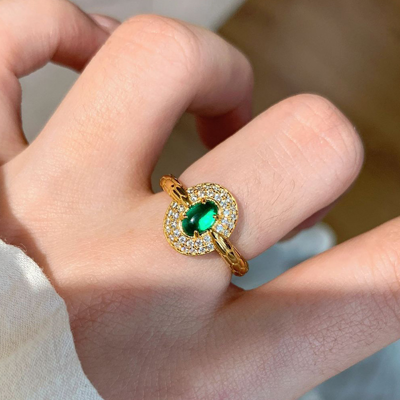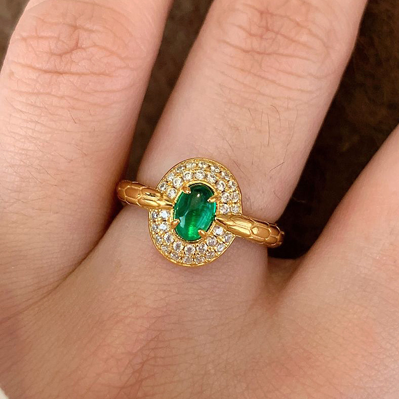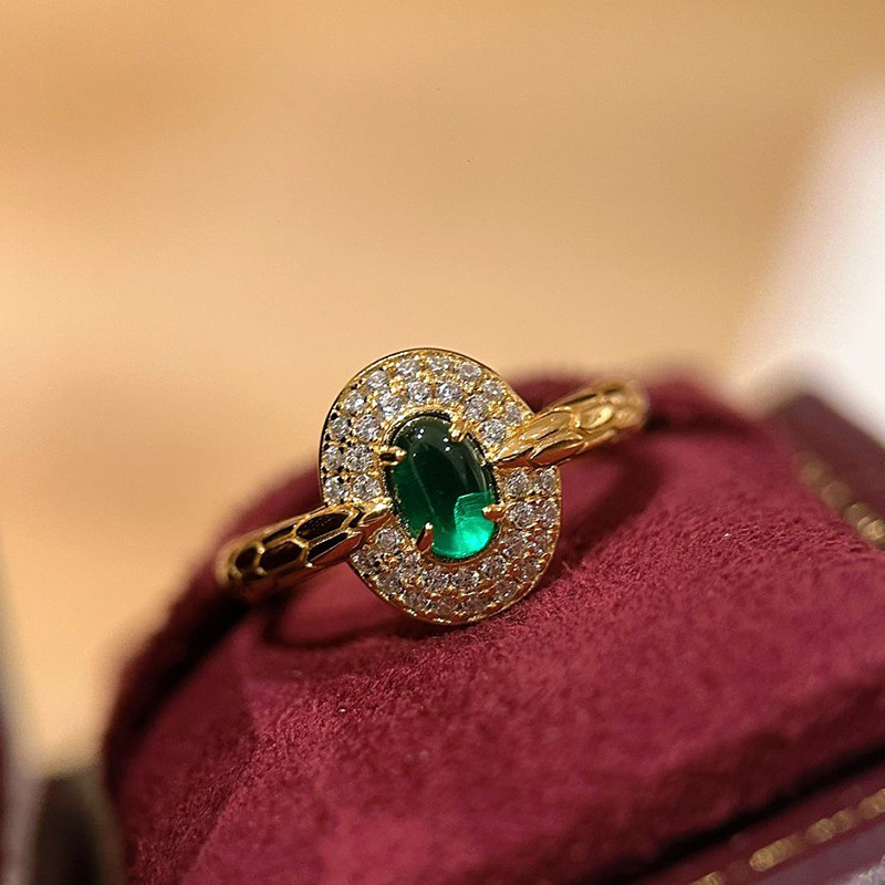 小红书爆款招财绿钻灵蛇戒2025新款本命年祖母绿满钻指环